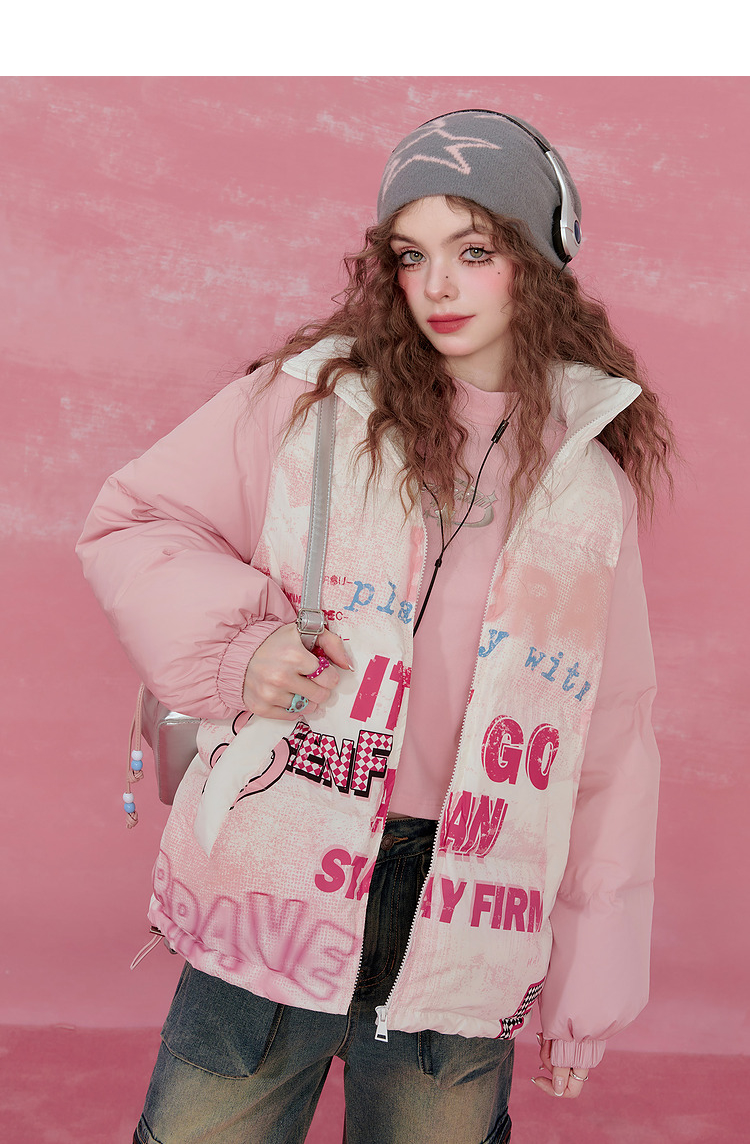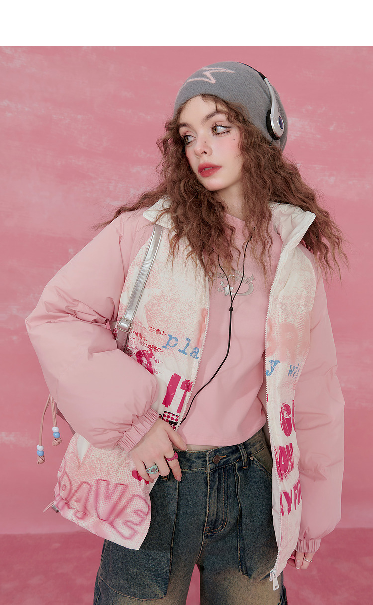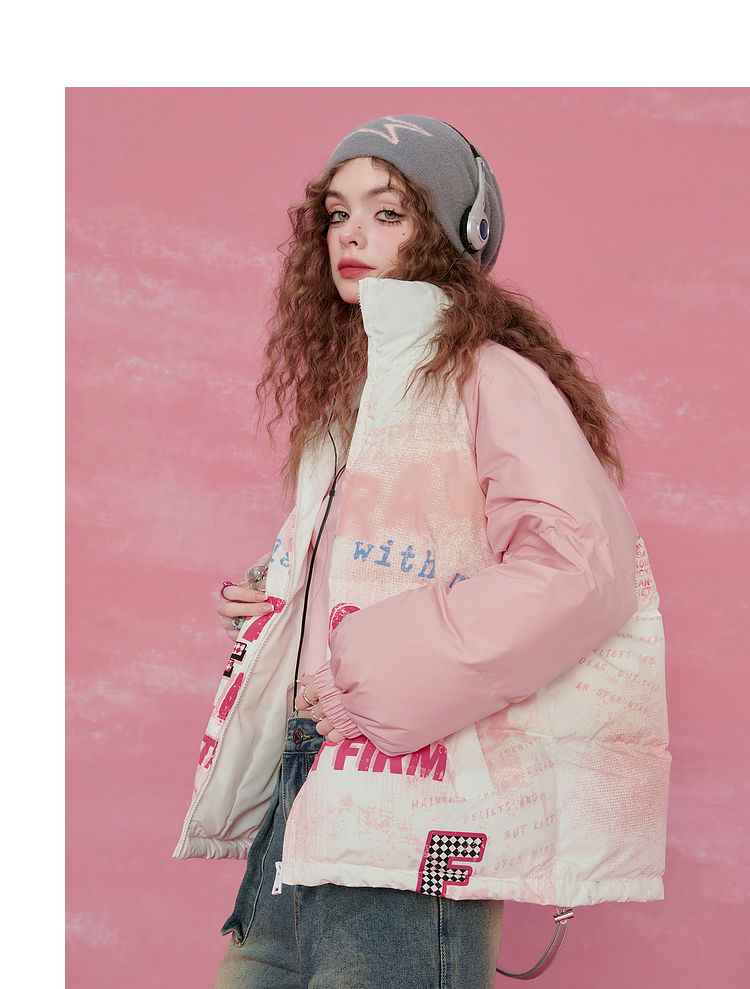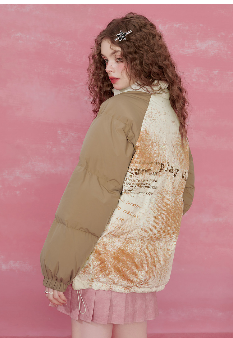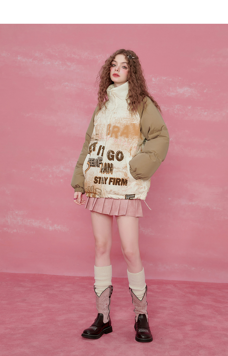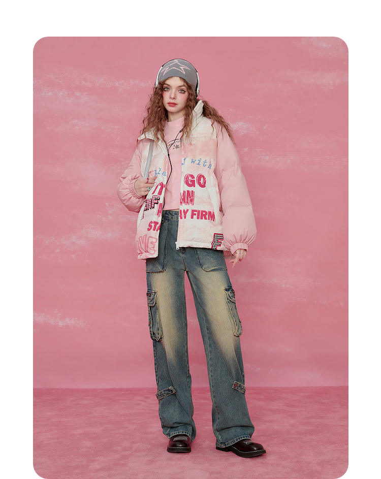 Graffiti Design Oversize White Duck Down Jacket NA6825