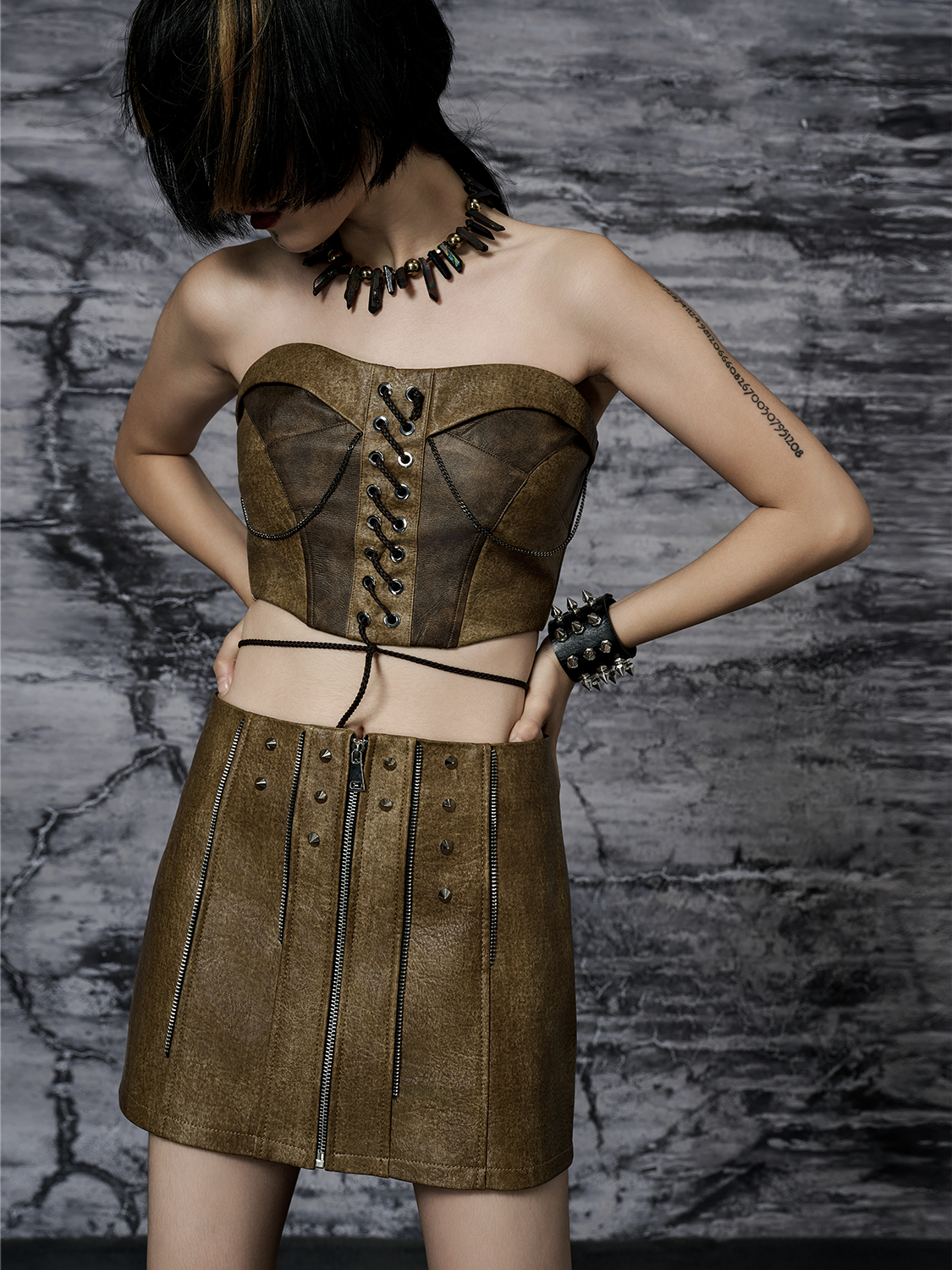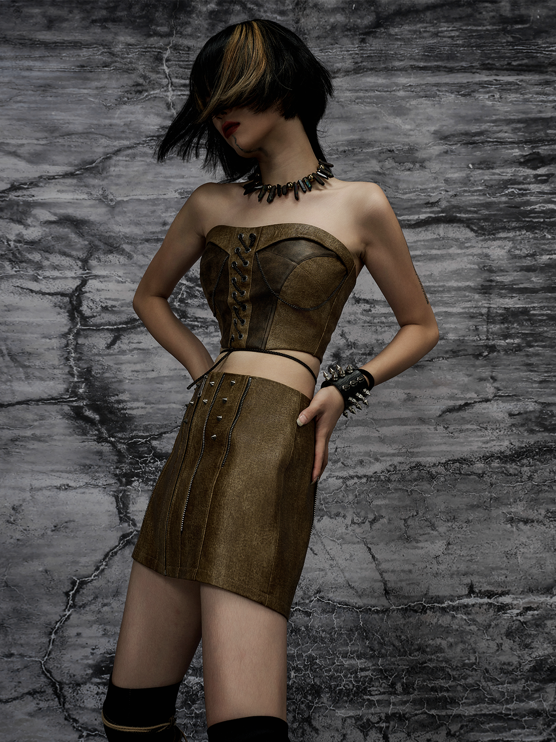 Heavy PU Leather Padded Slim Bustier NA8121