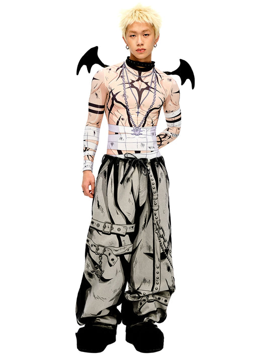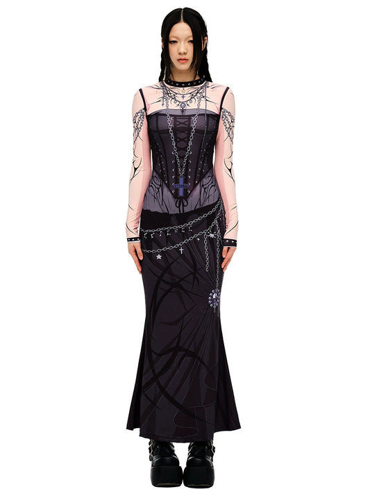 Graffiti Print Long Sleeve Mermaid Dress NA6675