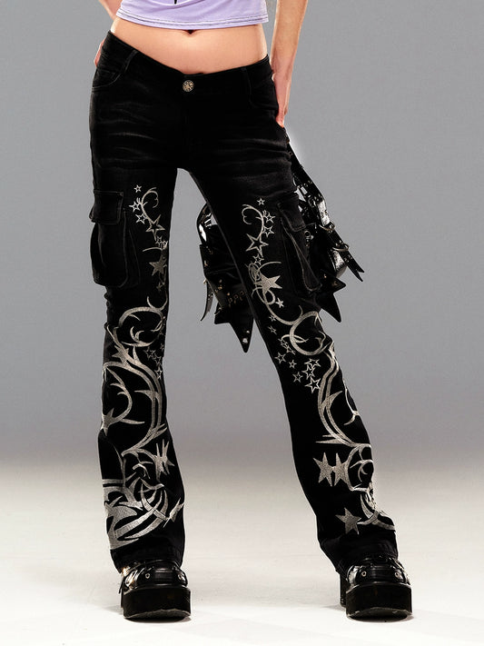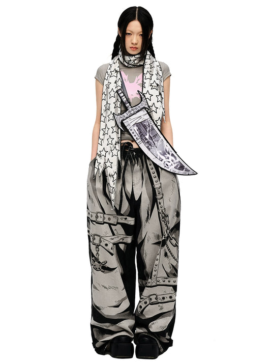 Graffiti Print Wide-Leg Straight Denim Jeans NA6684