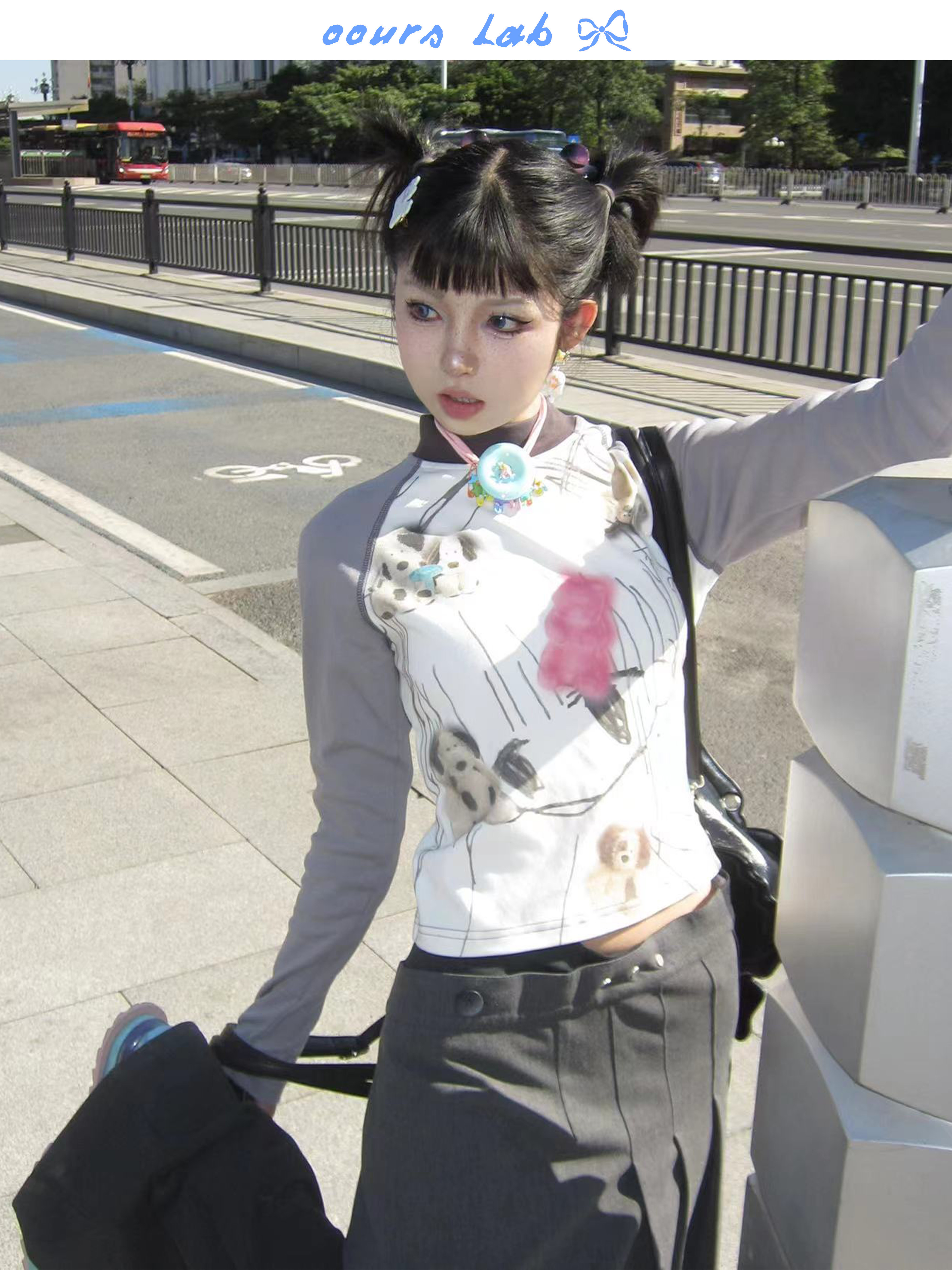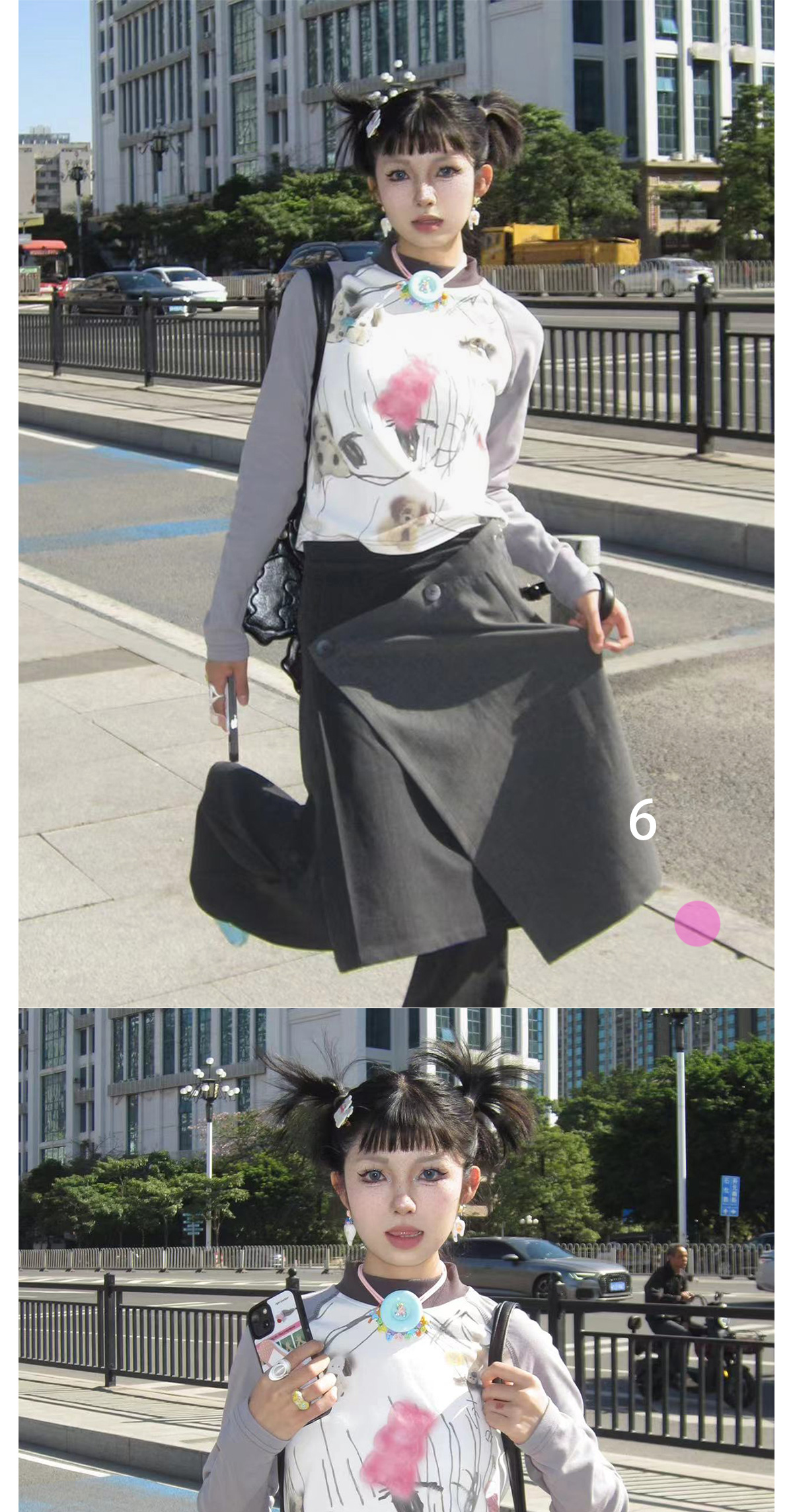 Graphic Stretch Mock Neck Raglan Long Sleeve T-Shirt NA8210