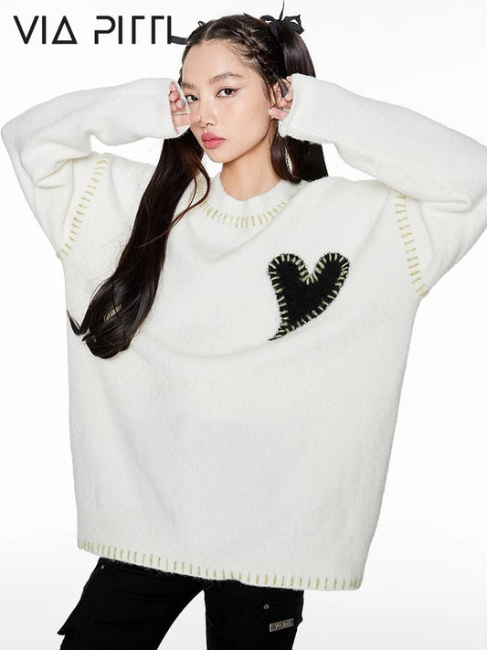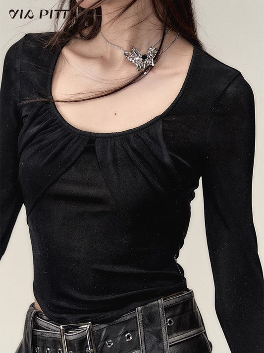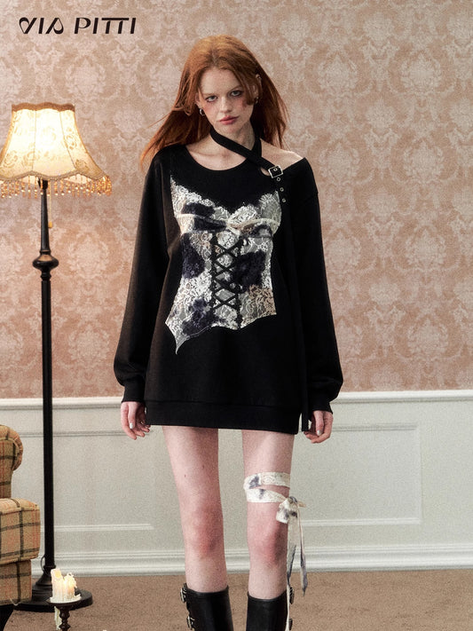 Big U-neck Lace Long Sleeve T-shirt NA4999