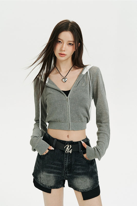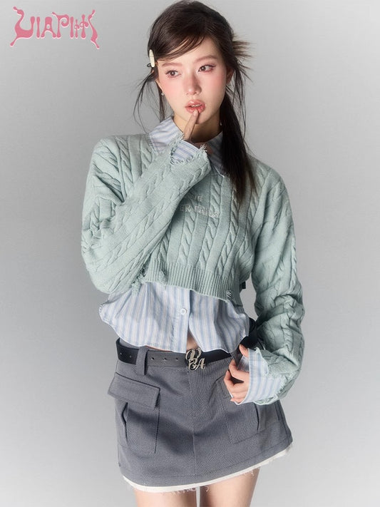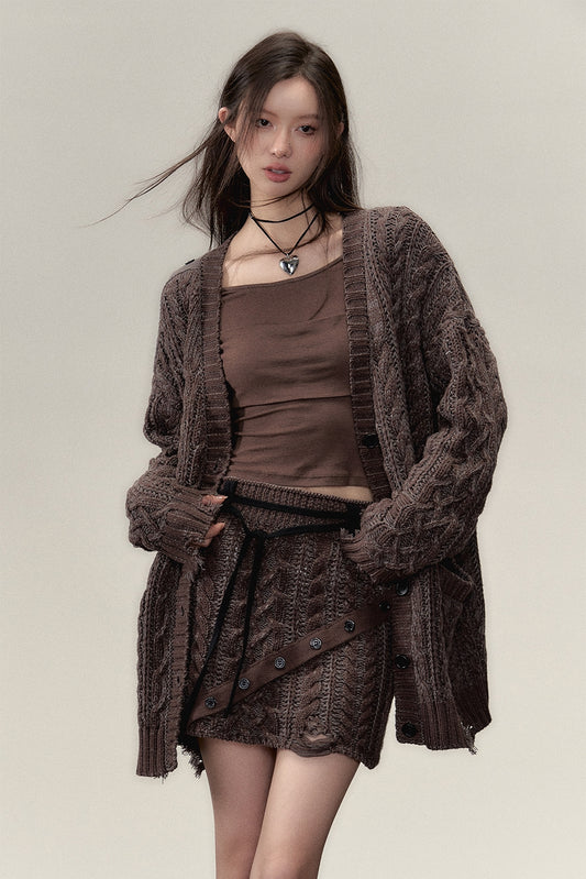 Fake Layered Zipper Long Sleeve Knit Cardigan NA4980