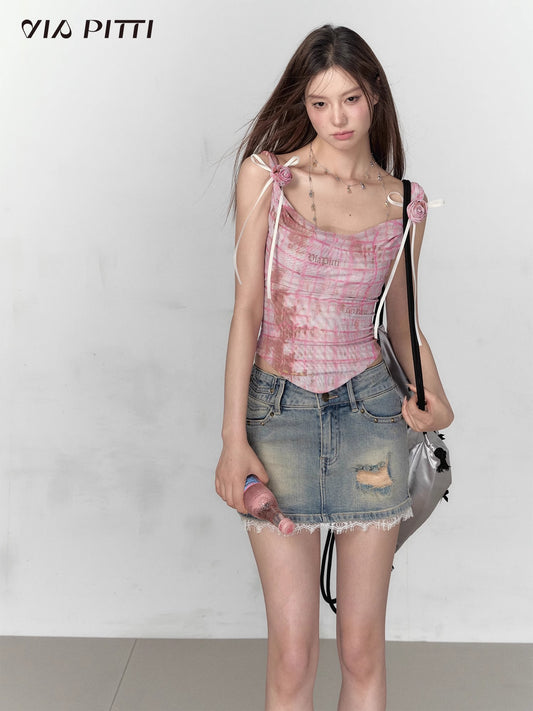 Lace Tailored Jacket & Short Skirt & Camisole Setup NA4983