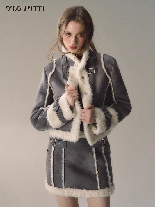 Short Warm Fluffy Jacket & Short Skirt Setup NA5024