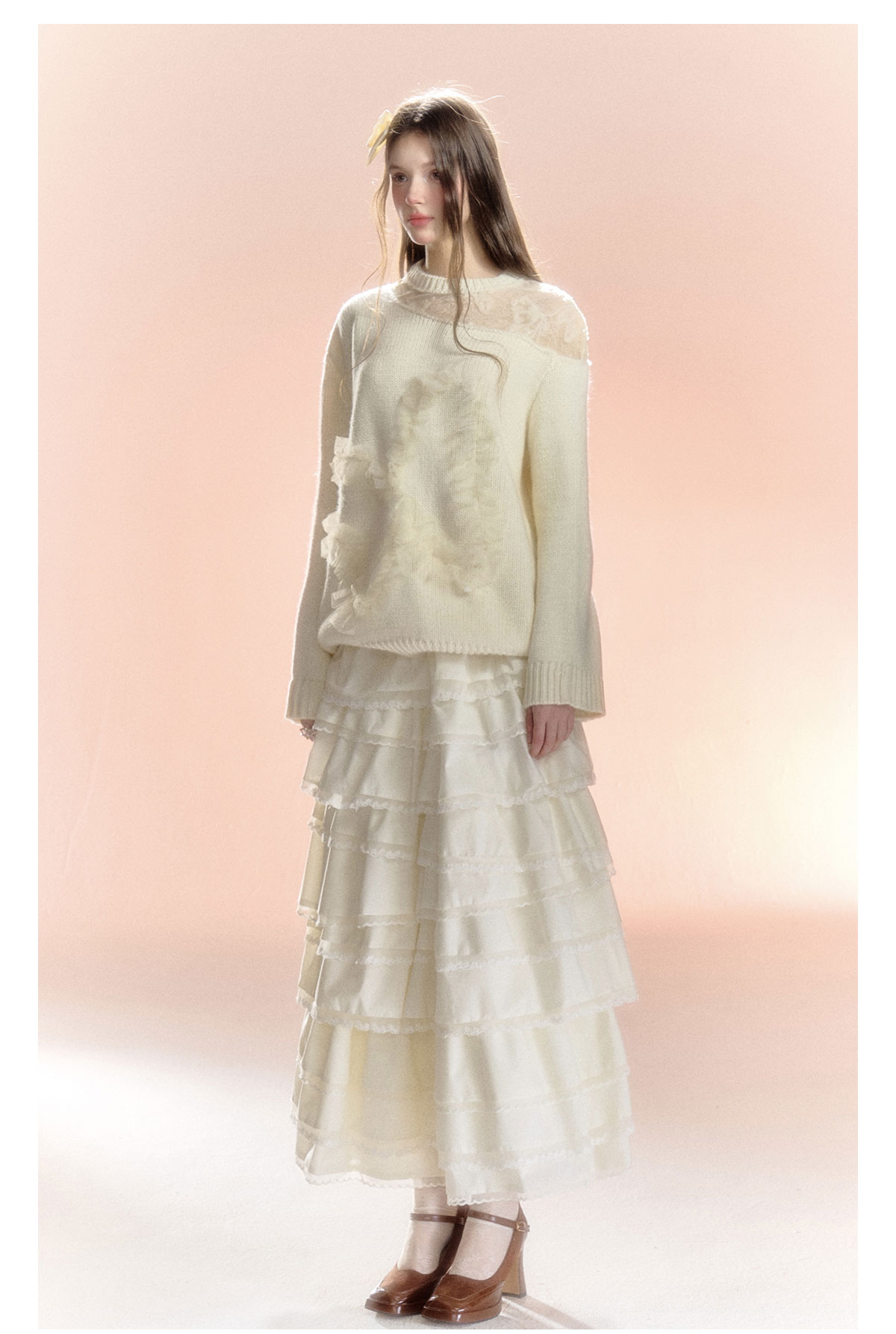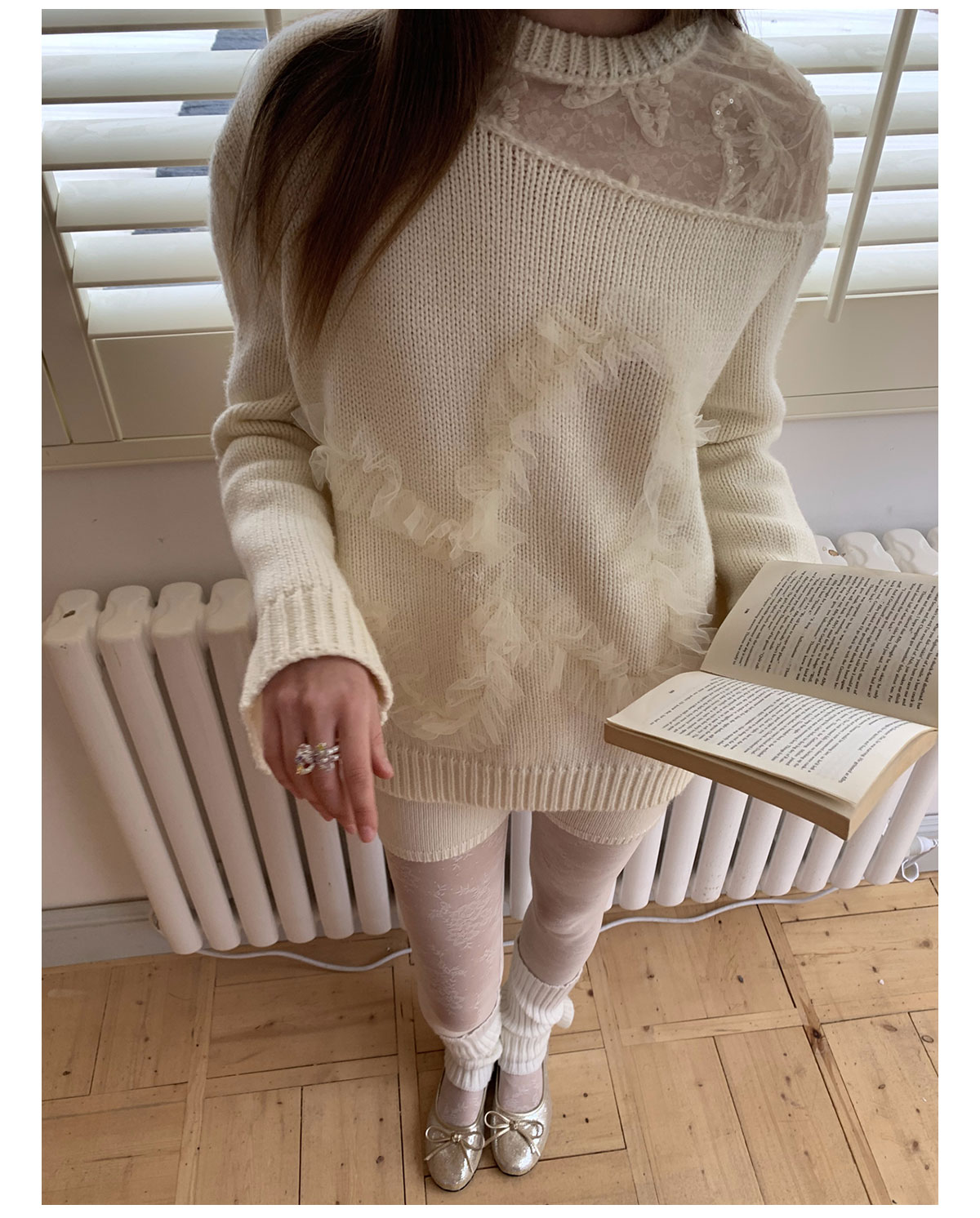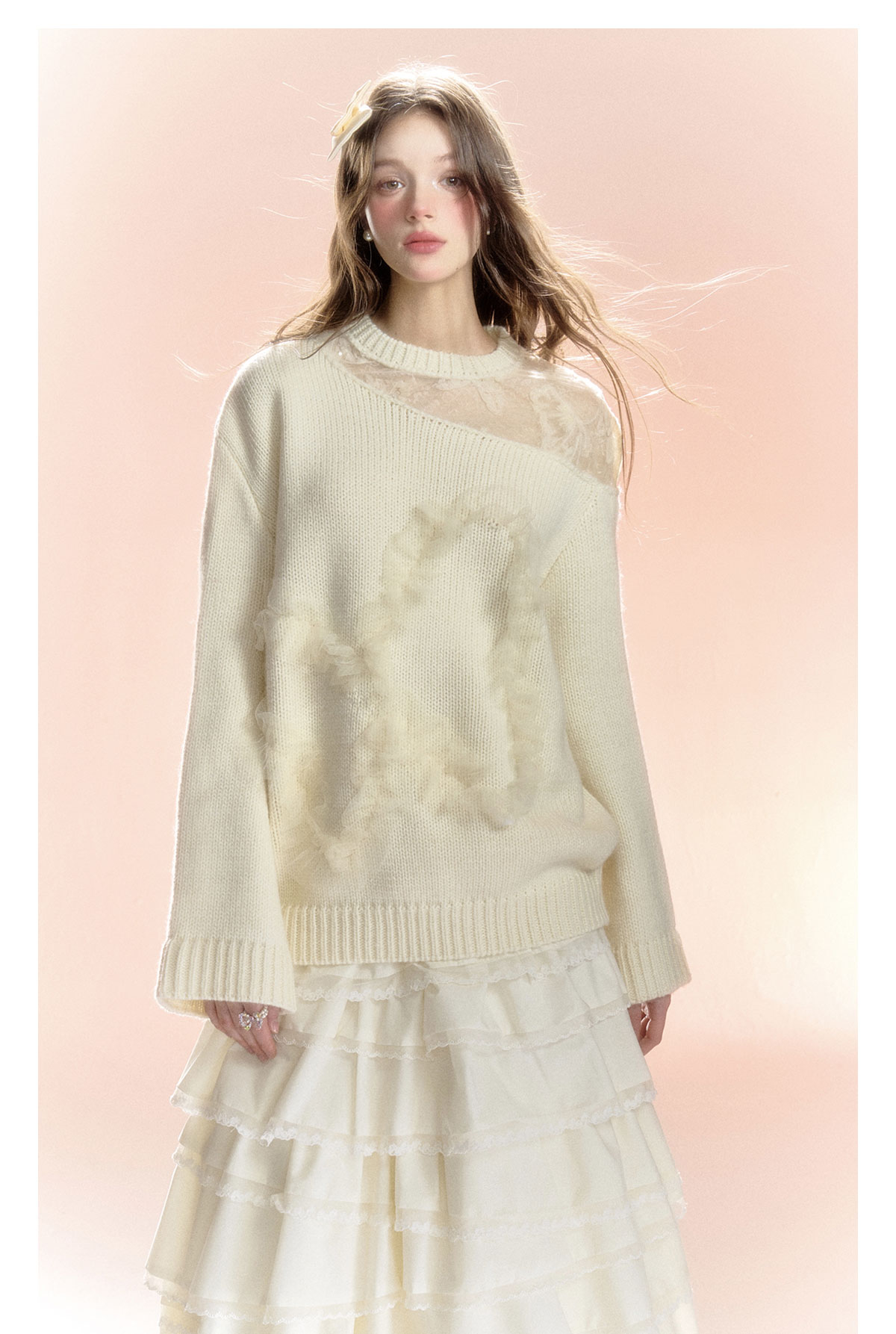 Butterfly Lace Mix Oversize Knit Sweater NA5828