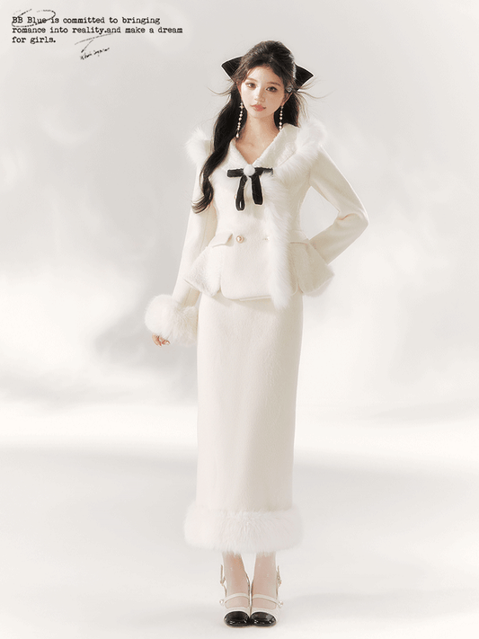 Fox Fur Trim Waist-Defining Jacket & Long Skirt Setup NA7435