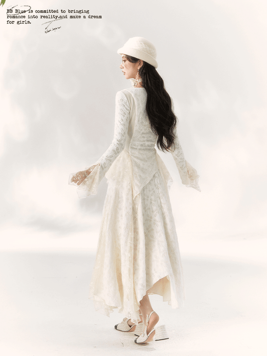 Irregular Hem Lace Camisole Dress & Shawl Setup NA7504