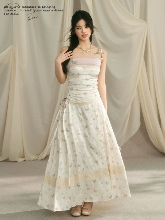 Butterfly Embroidery Lace Trim Camisole & Long Skirt Setup NA7412