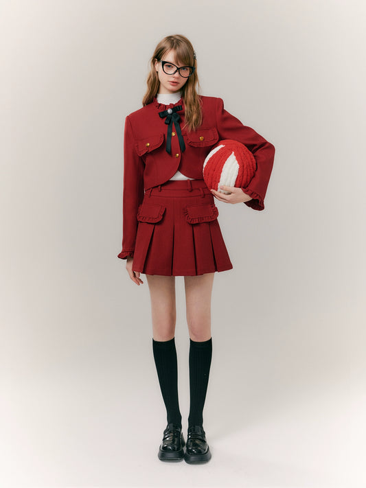 Red Bow-Knot Pleated Skirt & Blazer Jacket Setup NA7002
