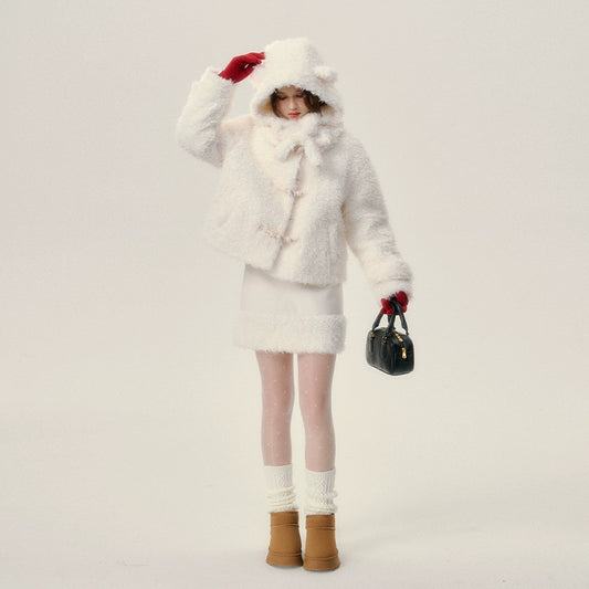 Fake Fur Hoodie & Short Skirt Setup NA7017
