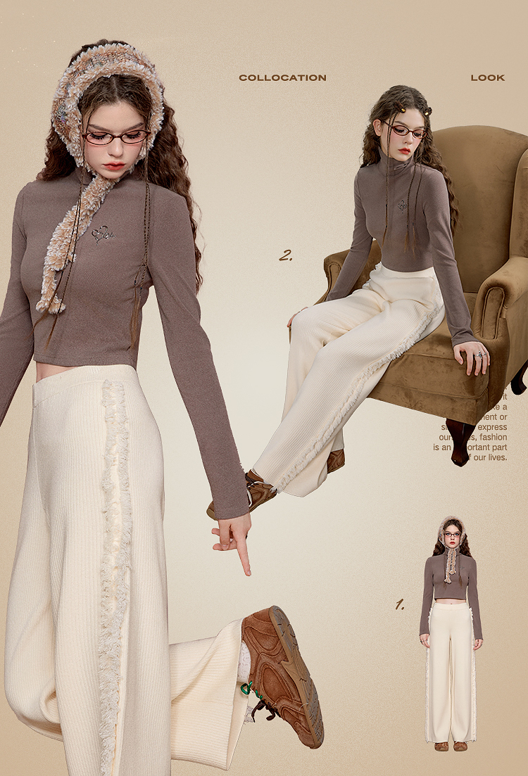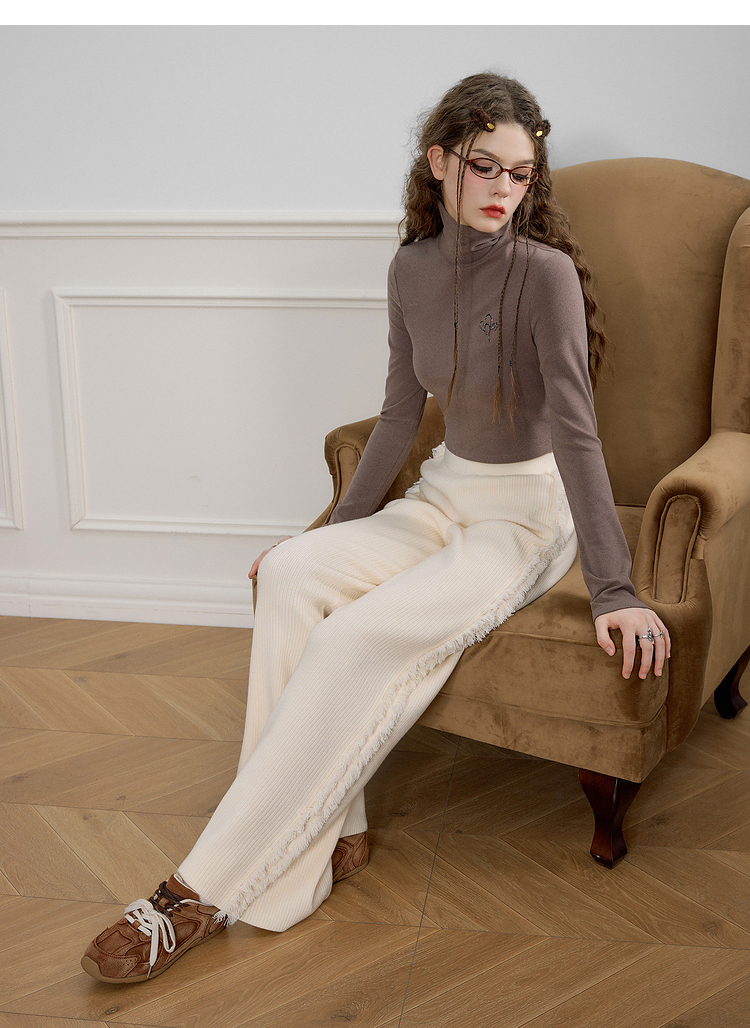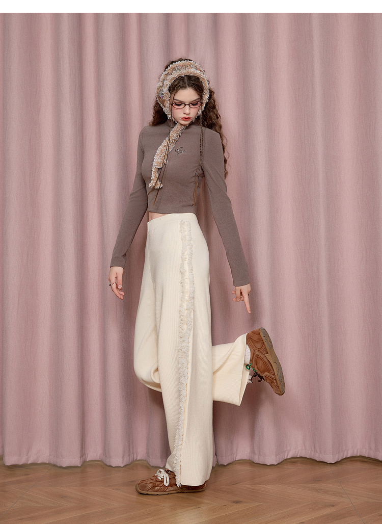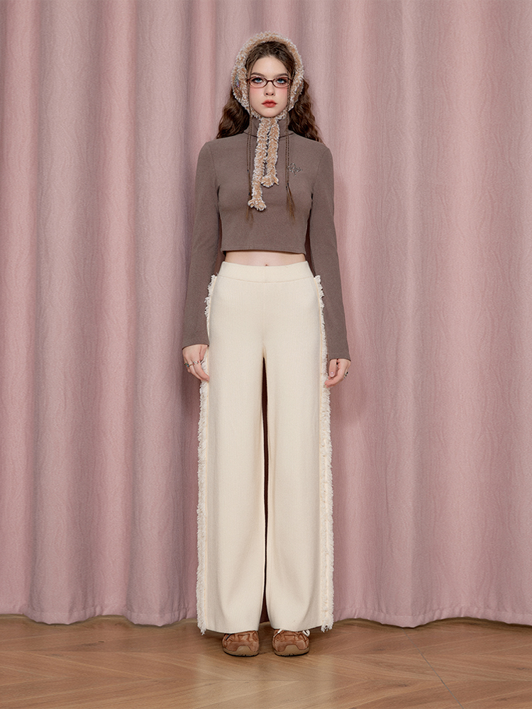 Textured Fringe Plush Pants NA6896