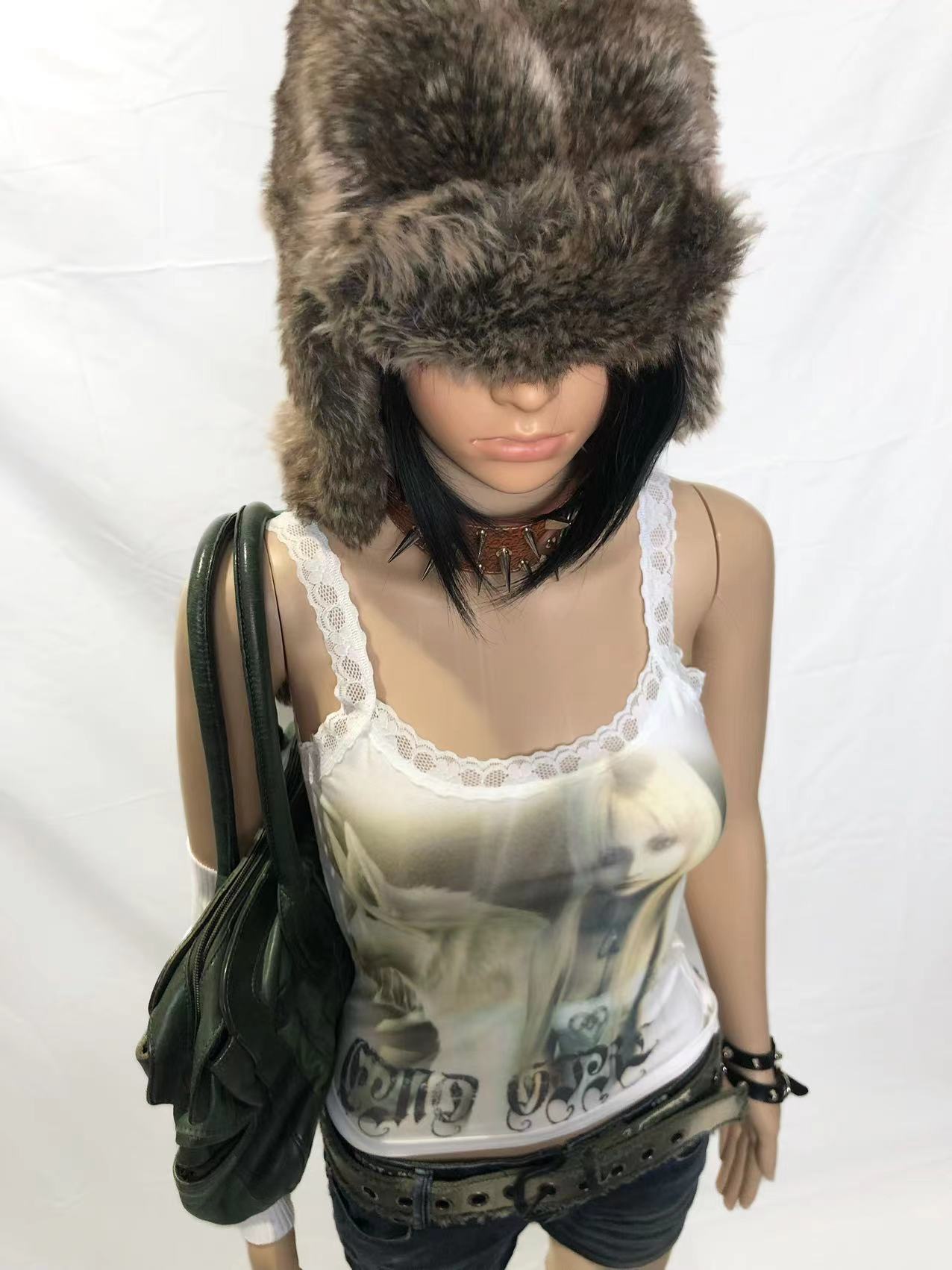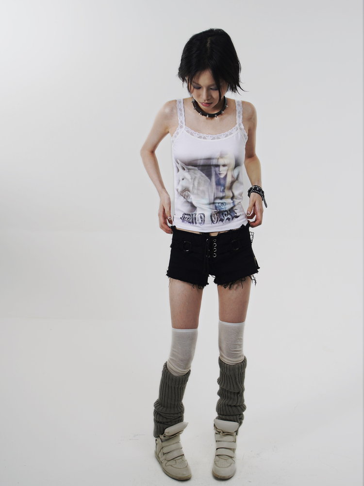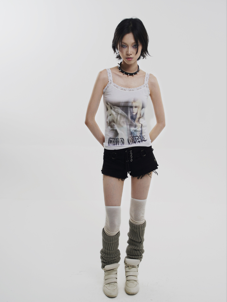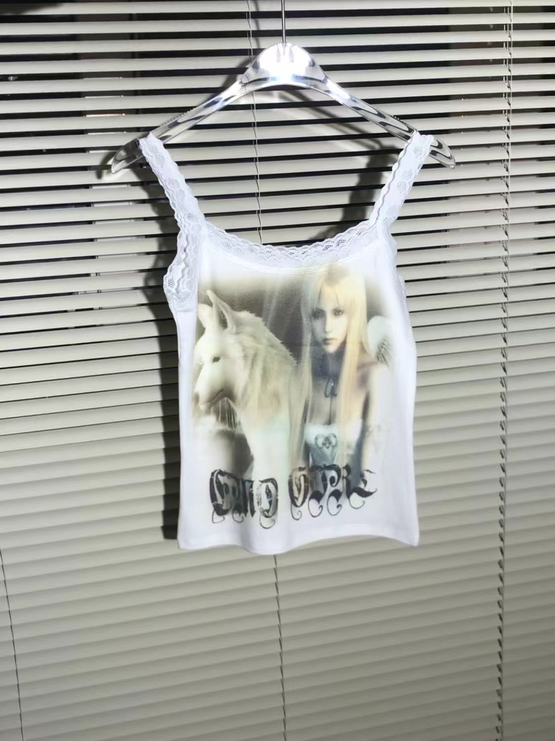 Angel Wolf Print Y2K Style Lace Camisole NA7615
