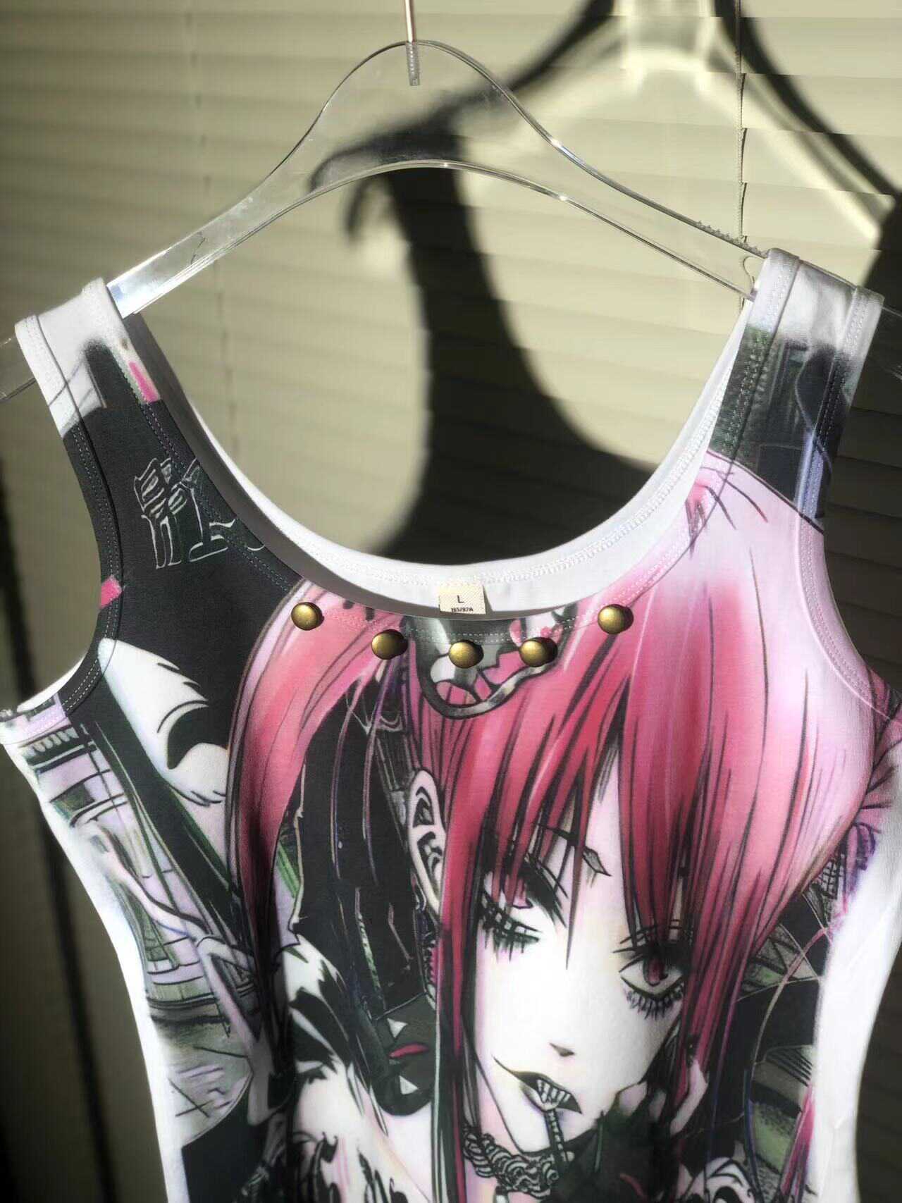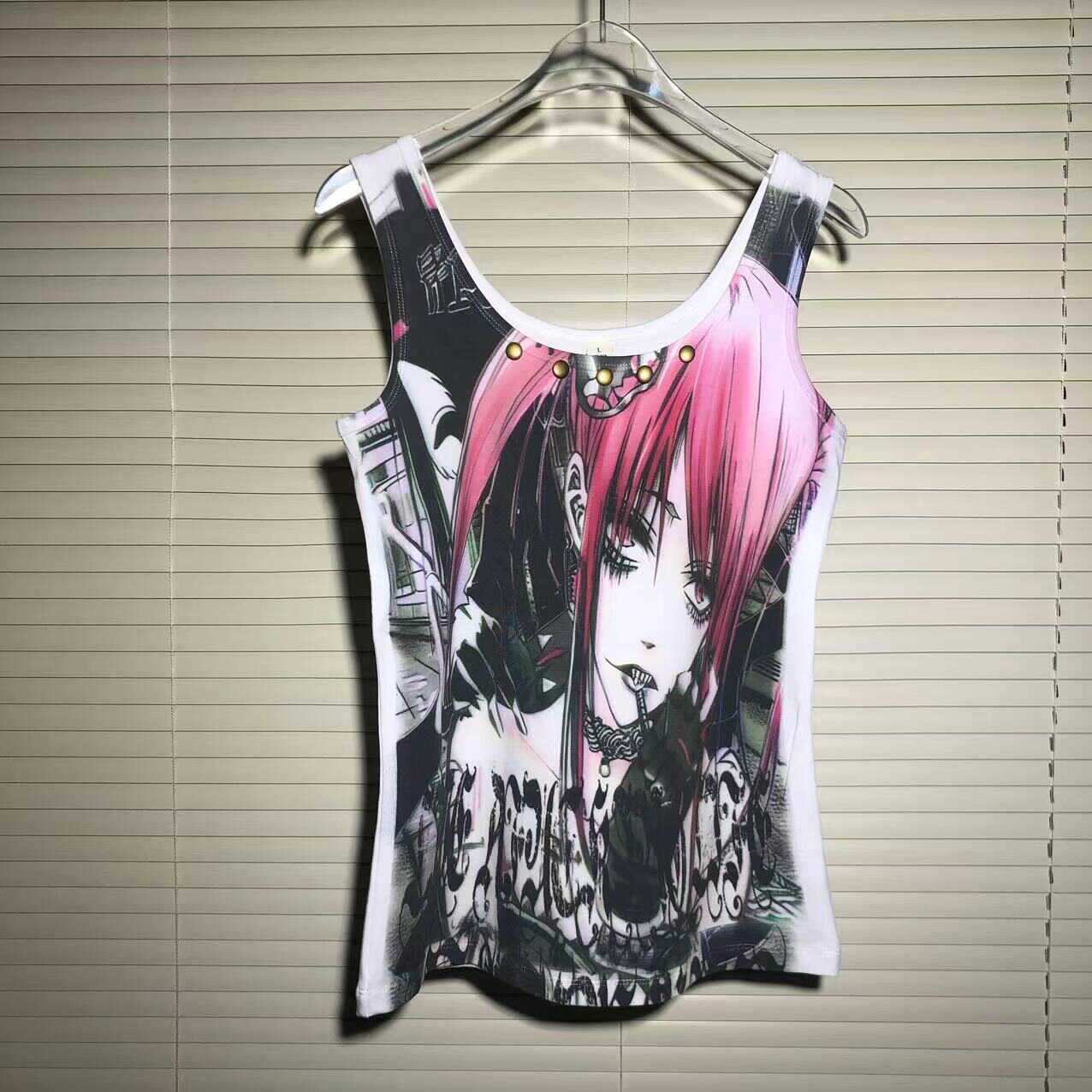 Punk Style 2D Girl Print Rivet Remake Tank Top NA7620