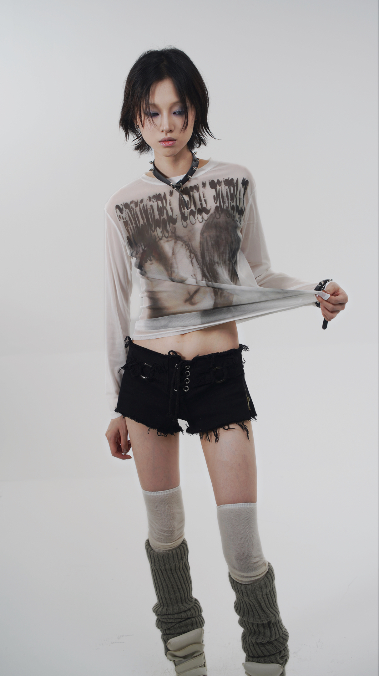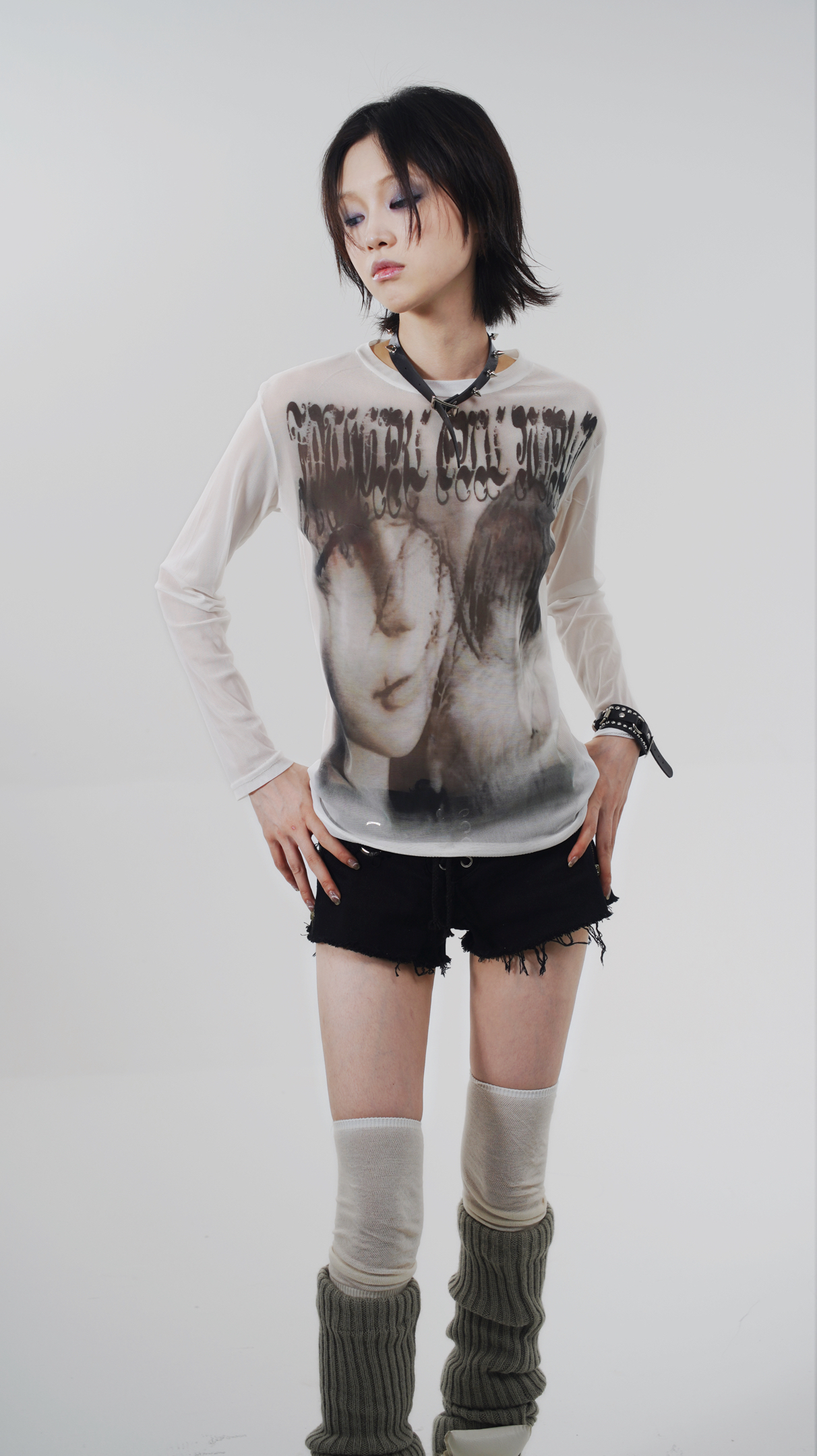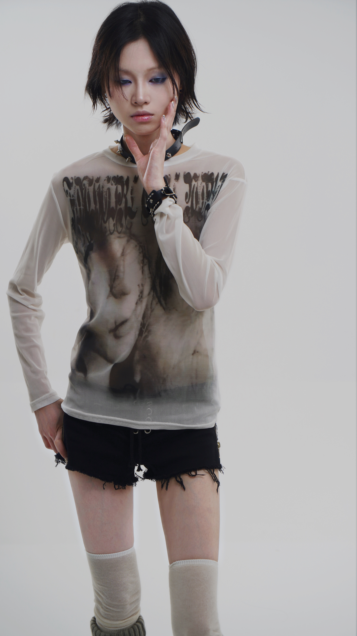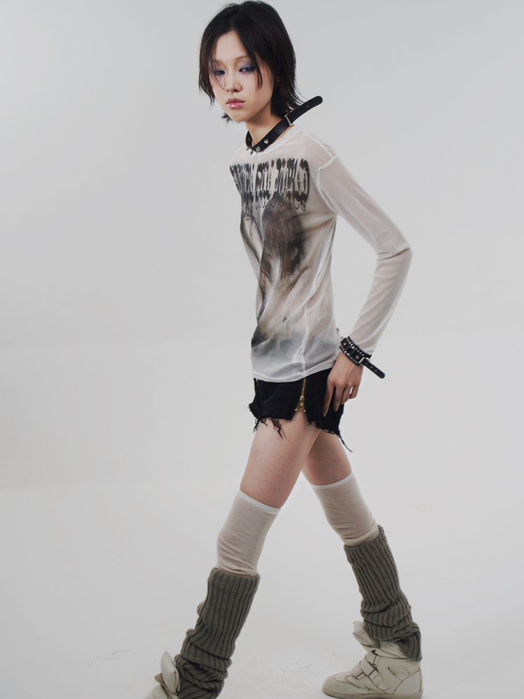 Goth Emo Artist Collaboration Mesh Long Sleeve T-Shirt NA7626
