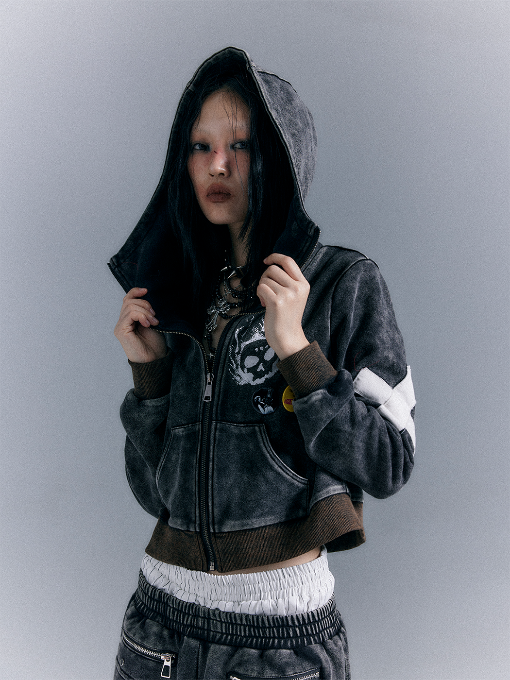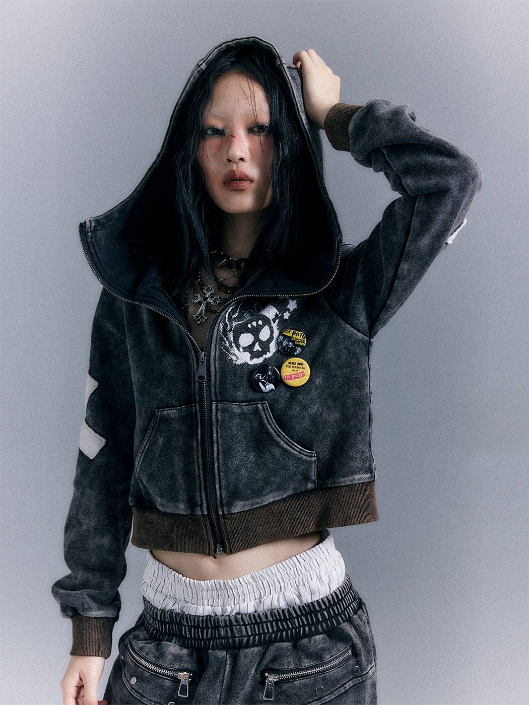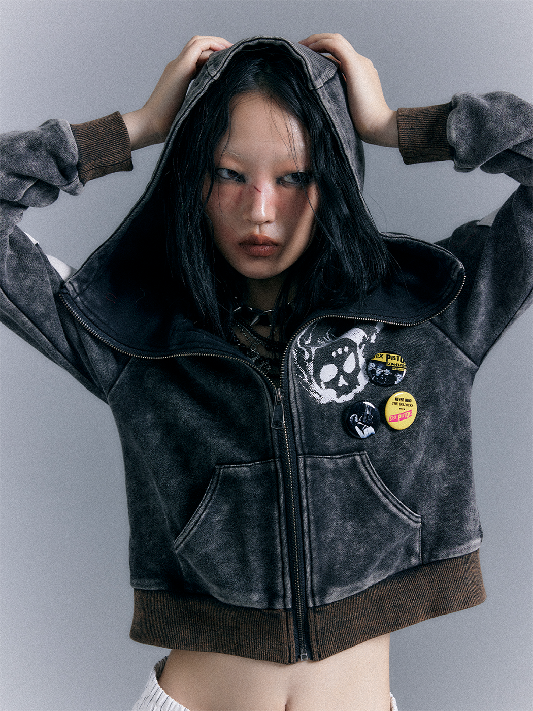 Punk Washed Graphic Zipper Hoodie NA8118