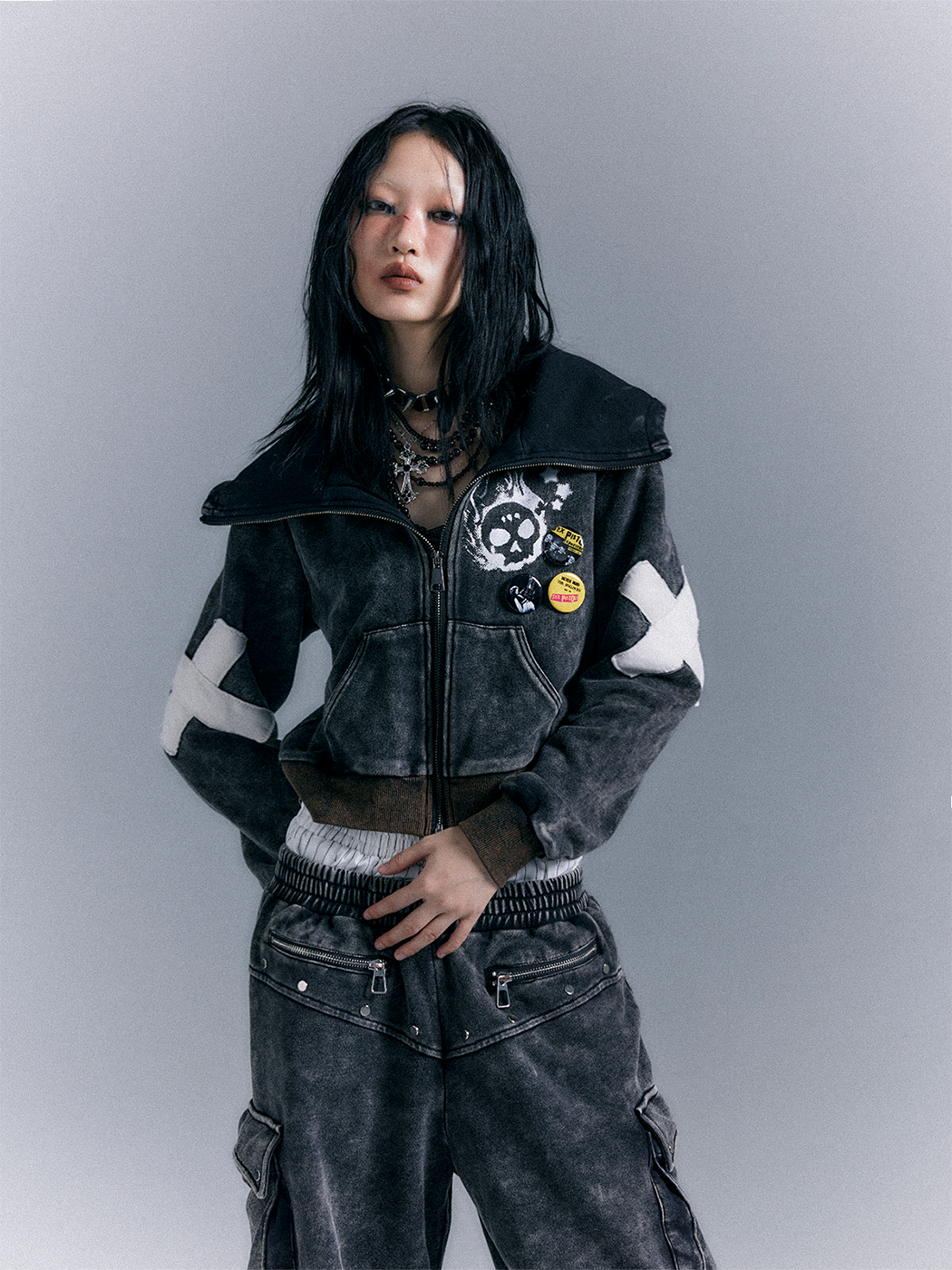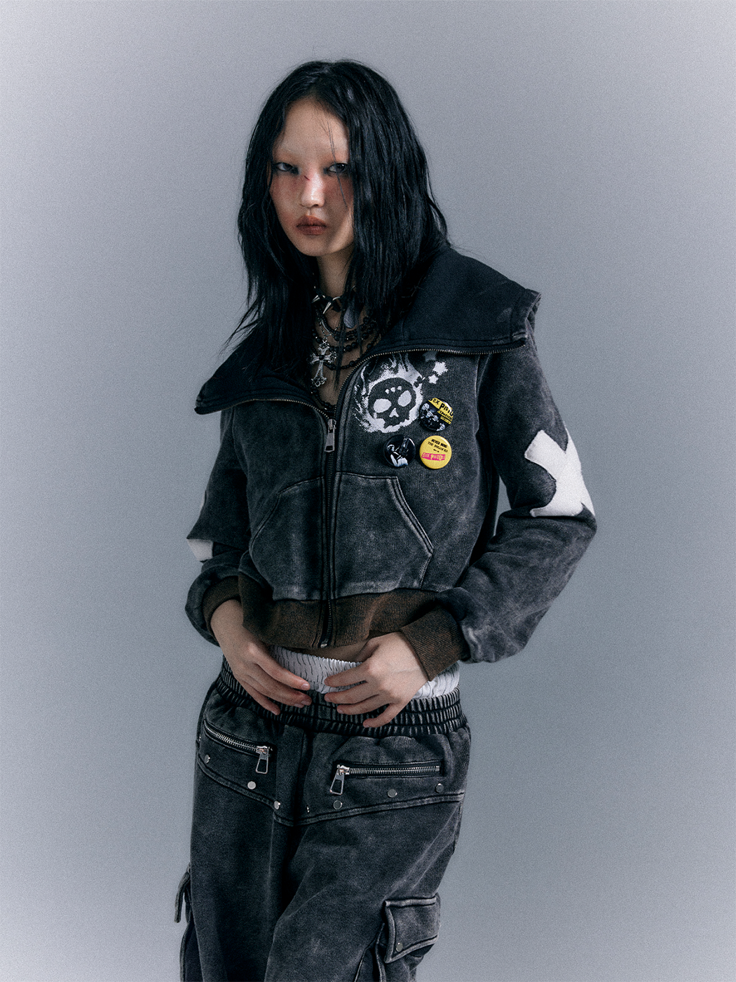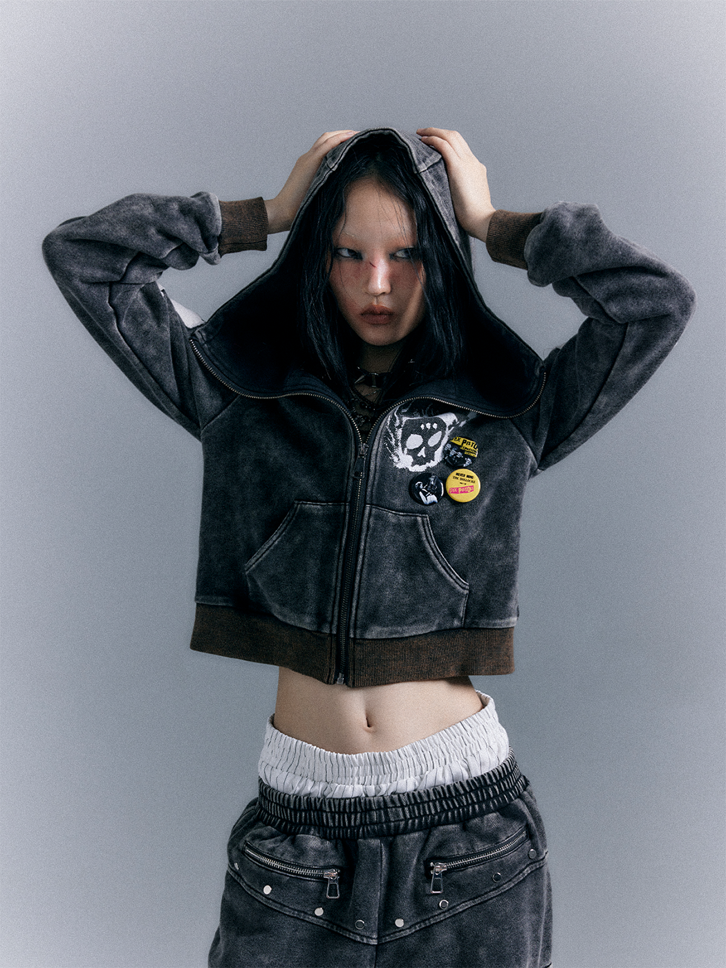 Punk Washed Graphic Zipper Hoodie NA8118