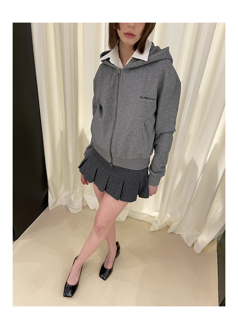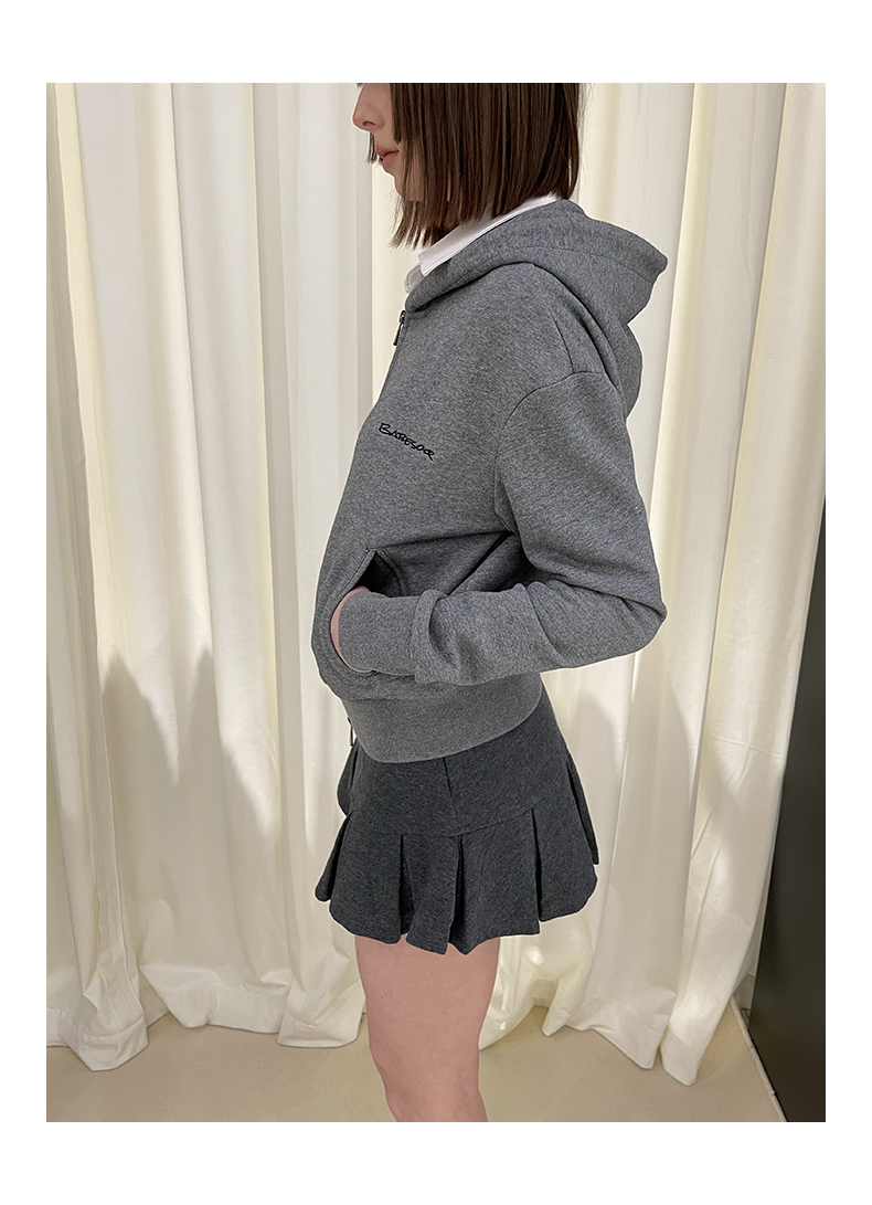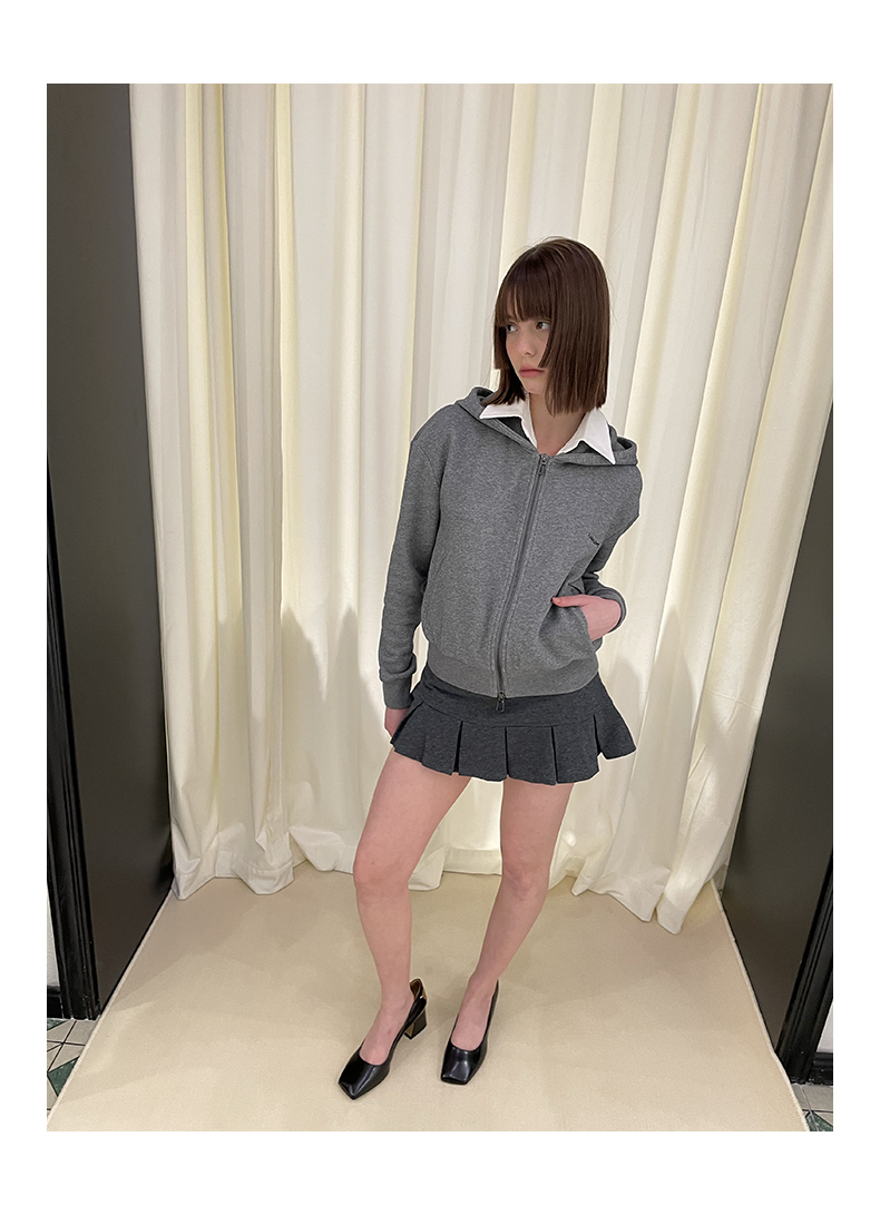 Zipper Hoodie & Pleated Short Skirt NA5991