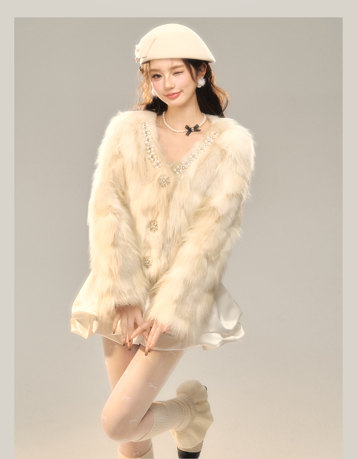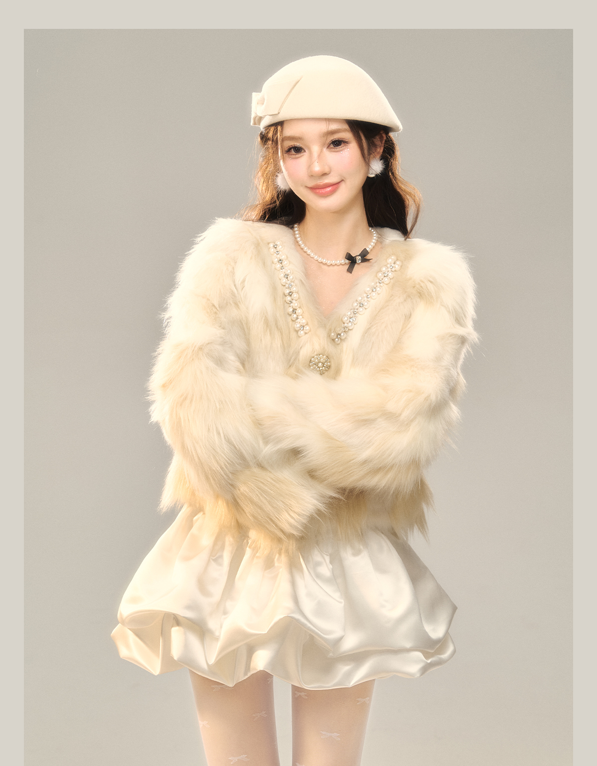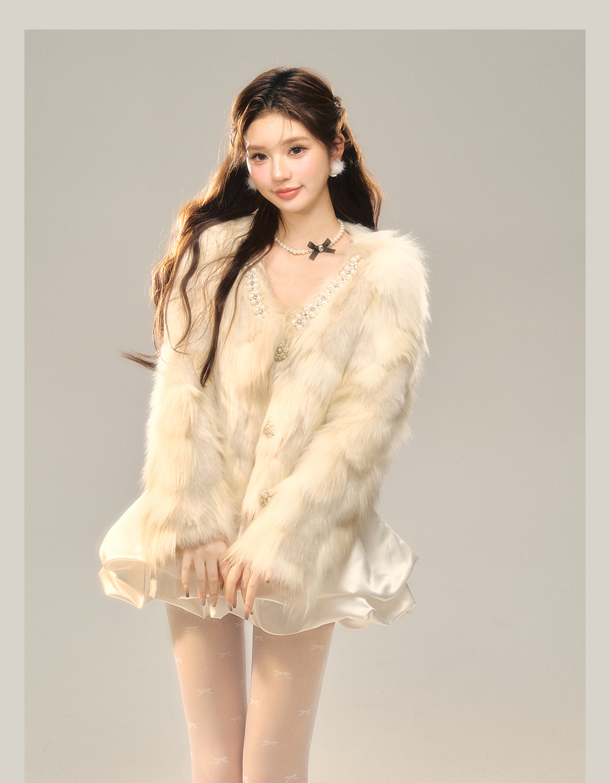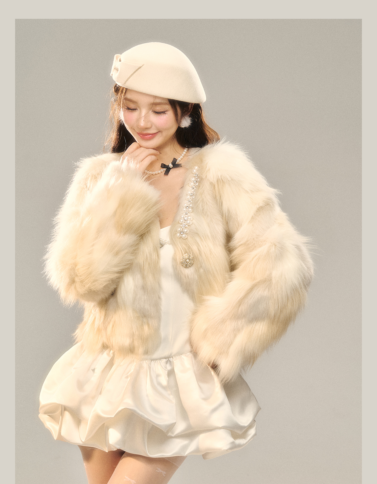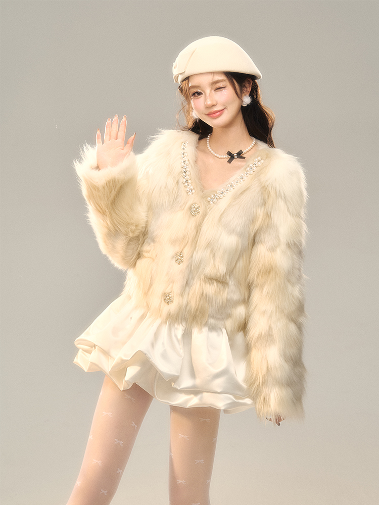 Champagne Color Fake Fur Jacket NA7408