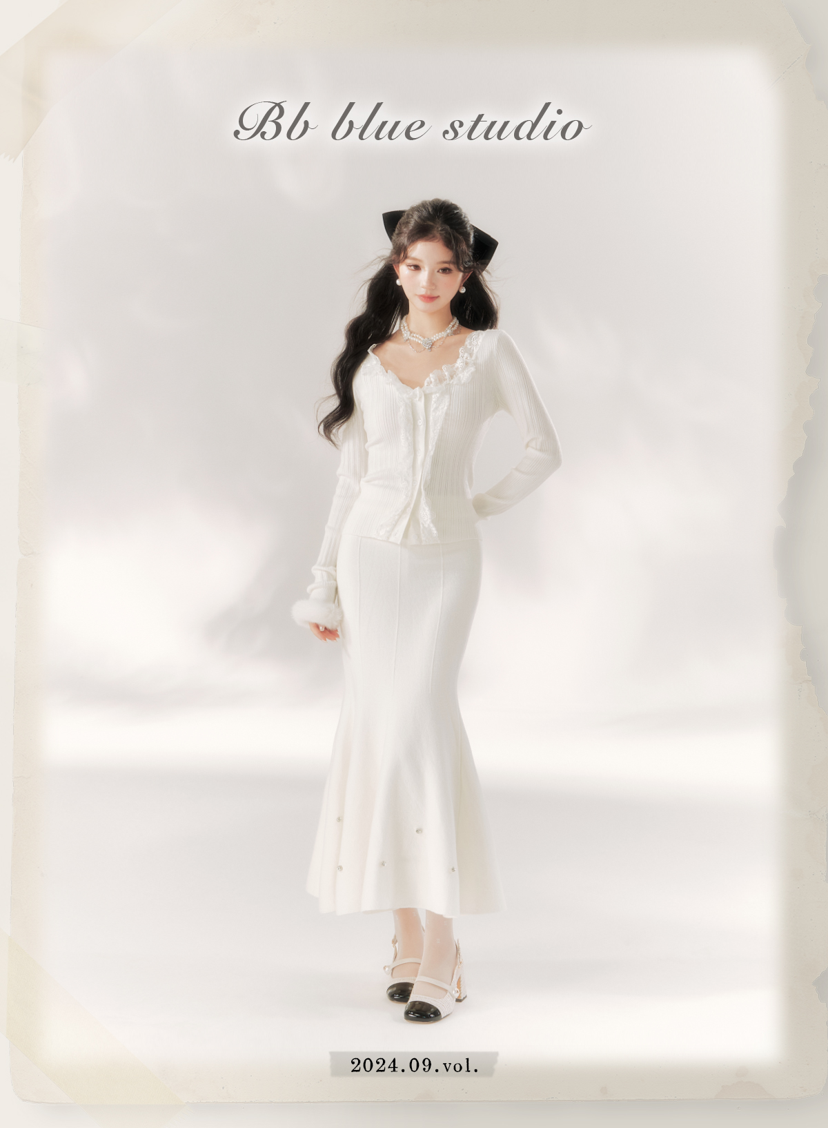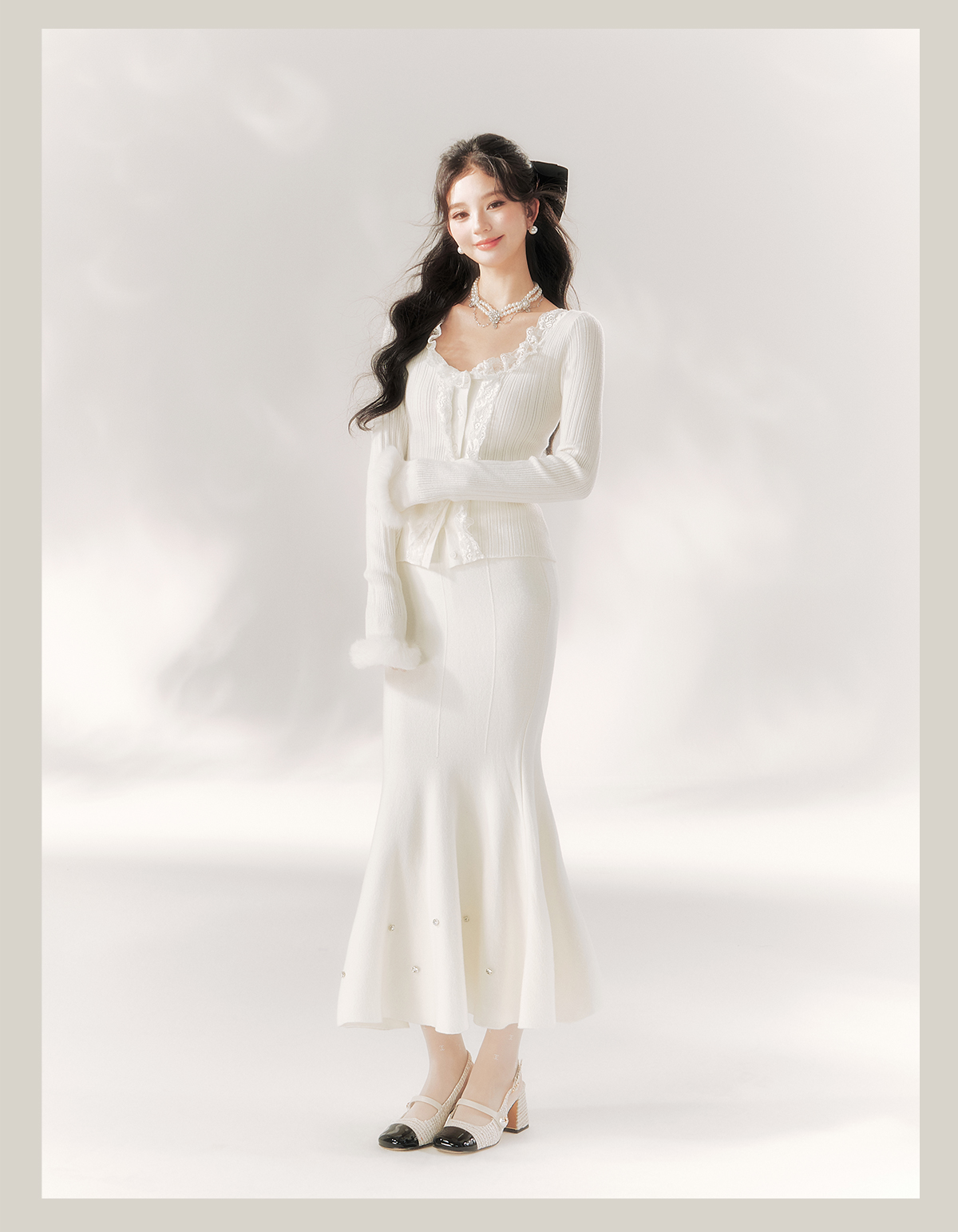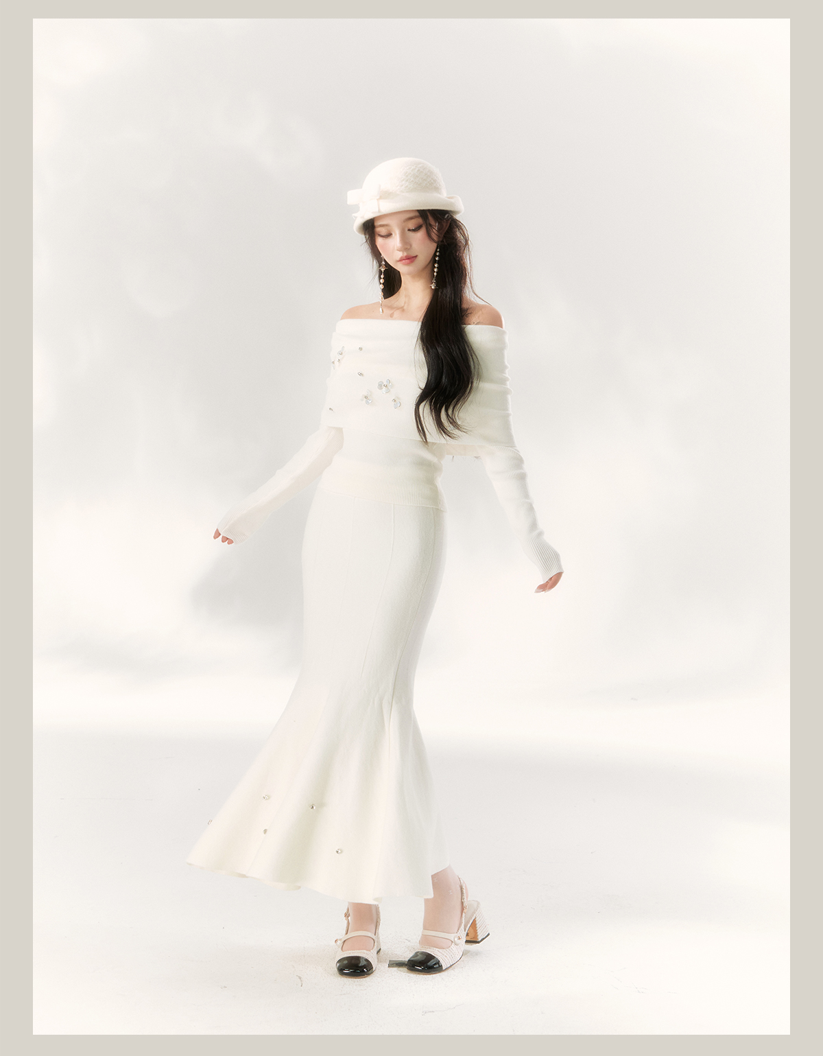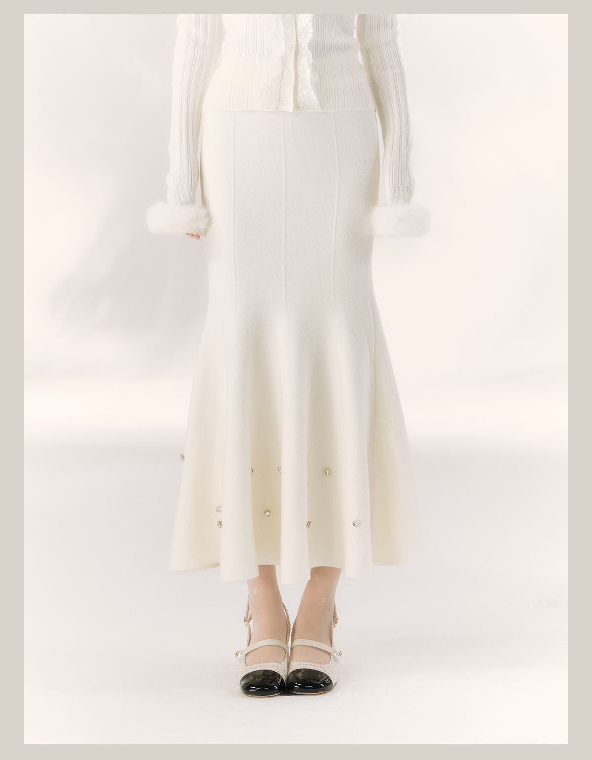 Rhinestone Knit Mermaid Long Skirt NA7507