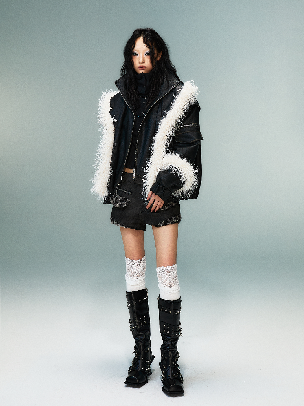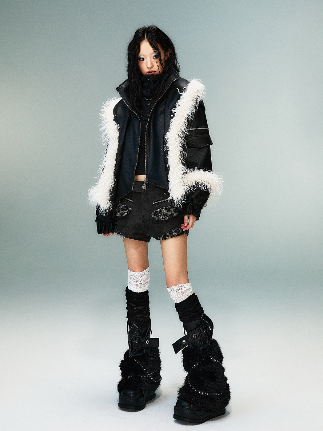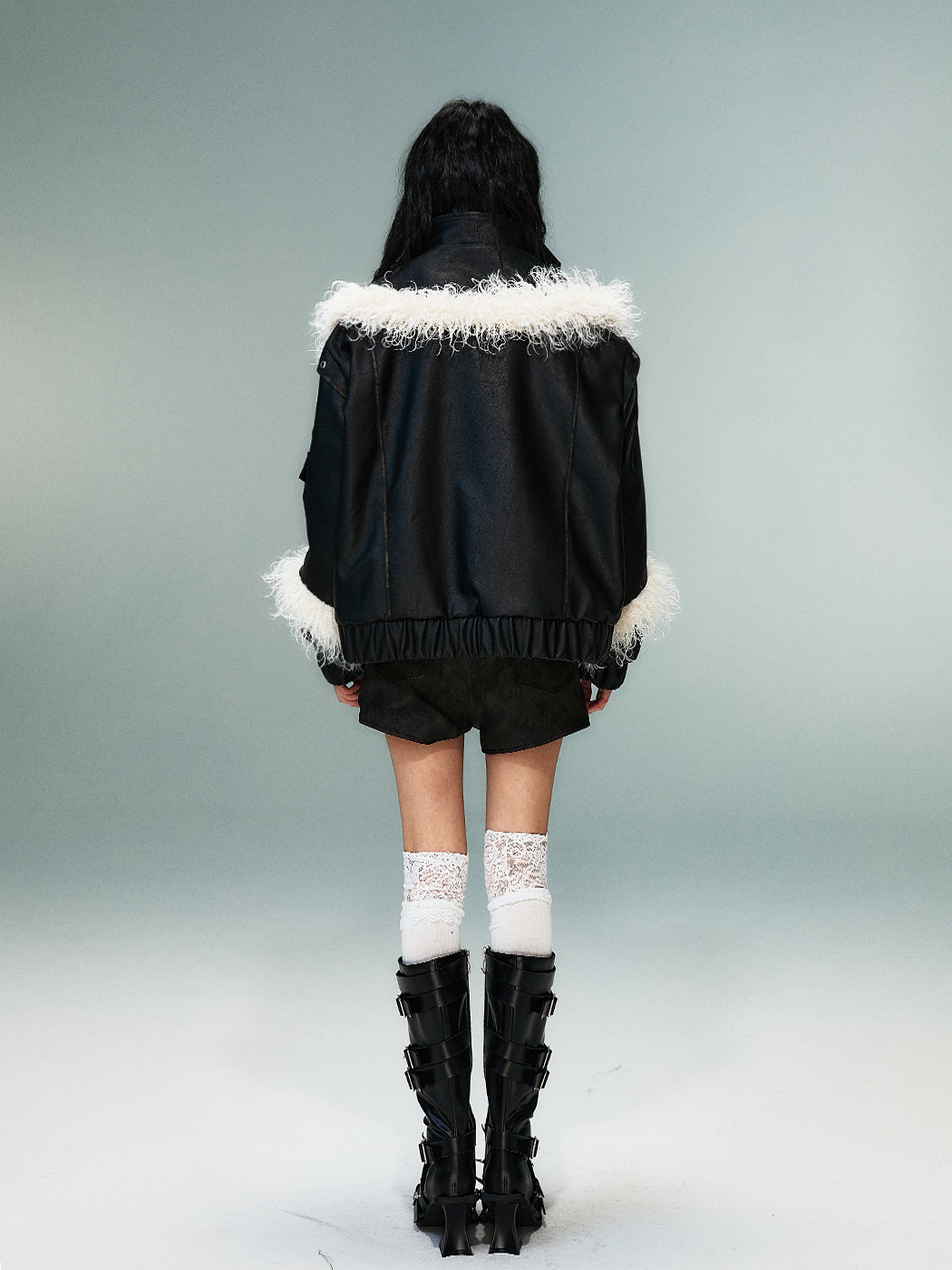 Fake Layered Washed Thickened PU Leather Padded Short Jacket NA8179