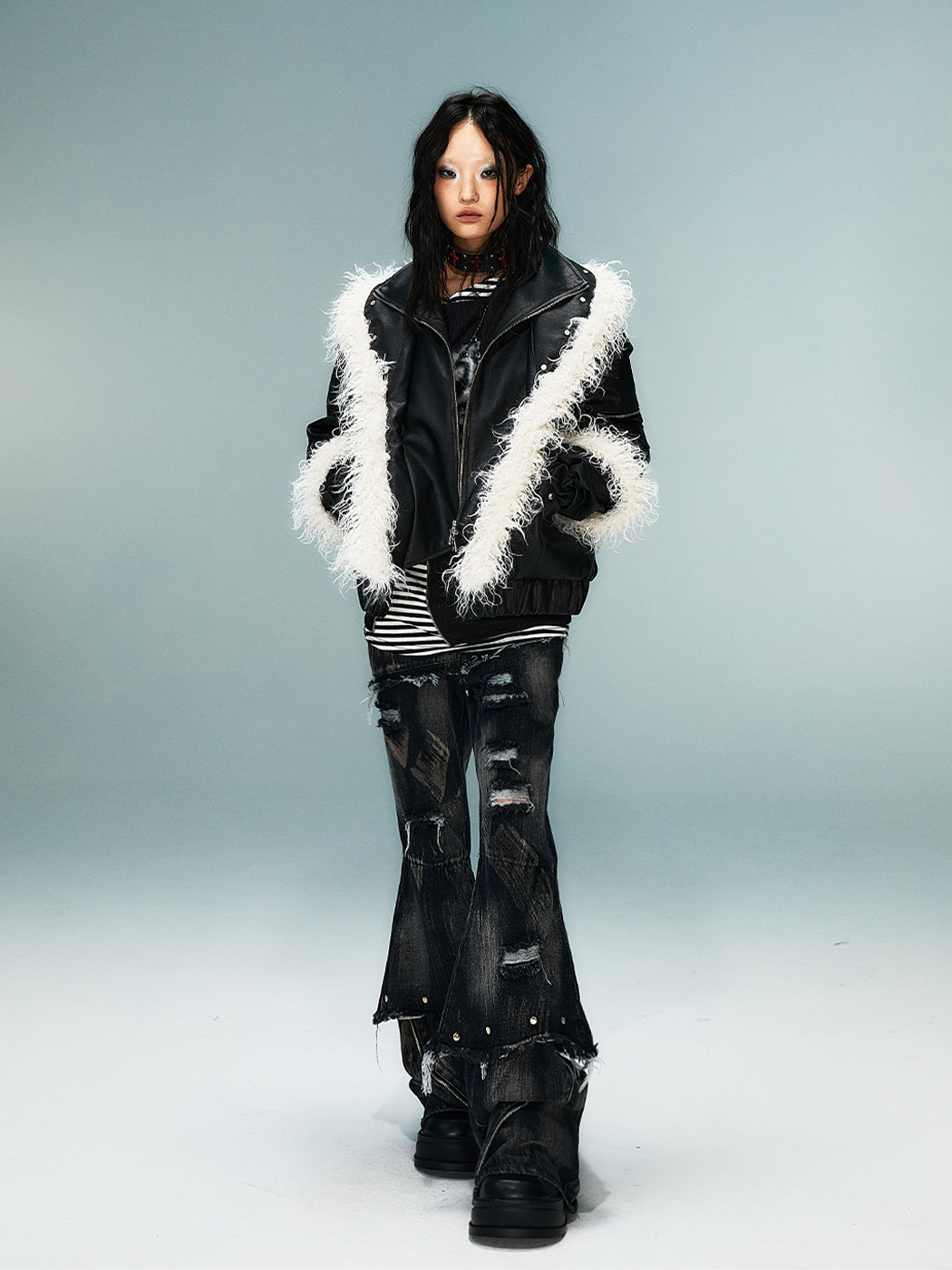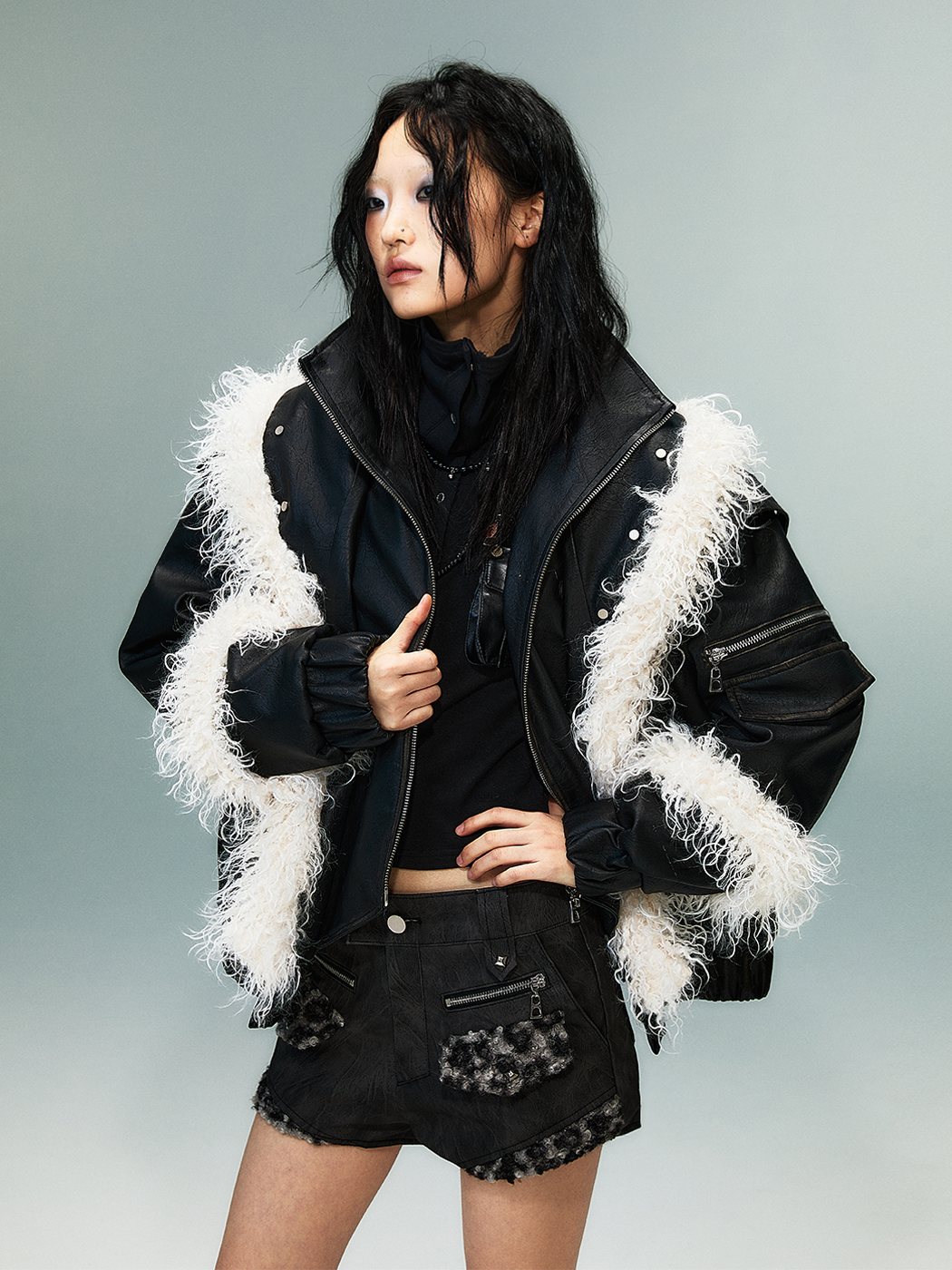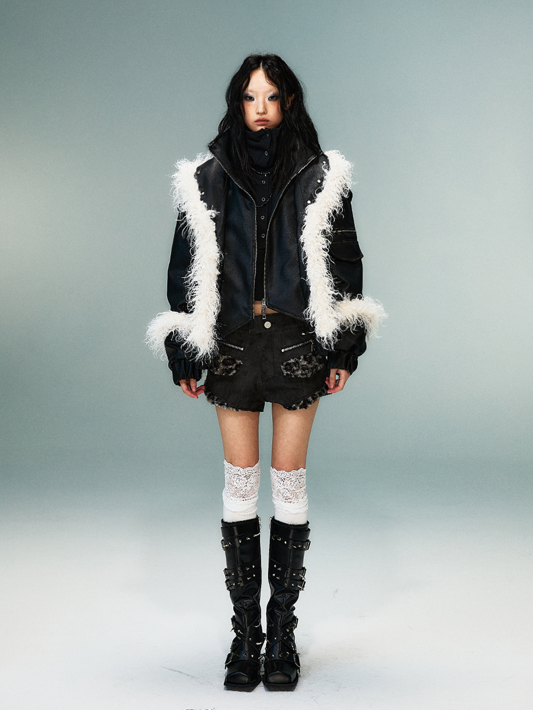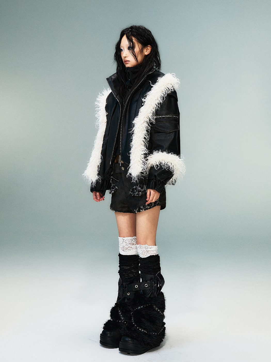 Fake Layered Washed Thickened PU Leather Padded Short Jacket NA8179