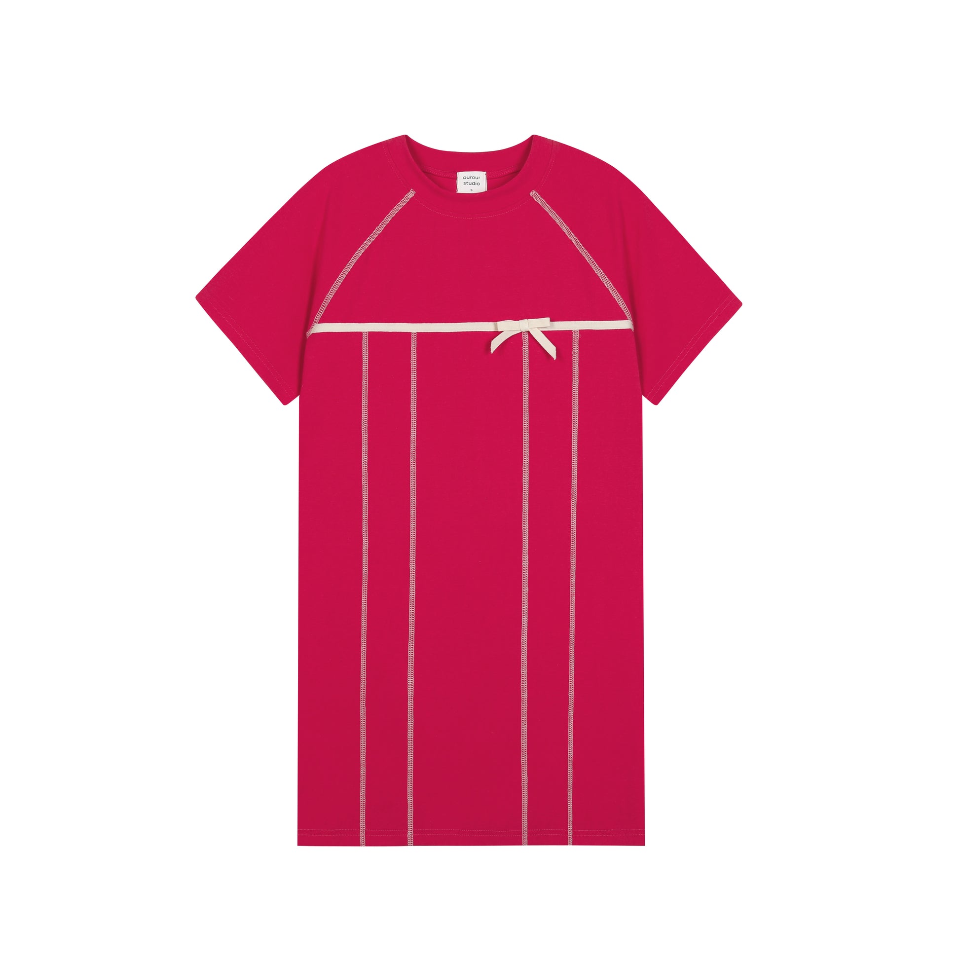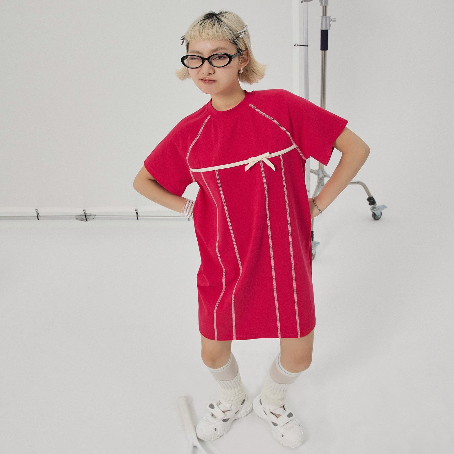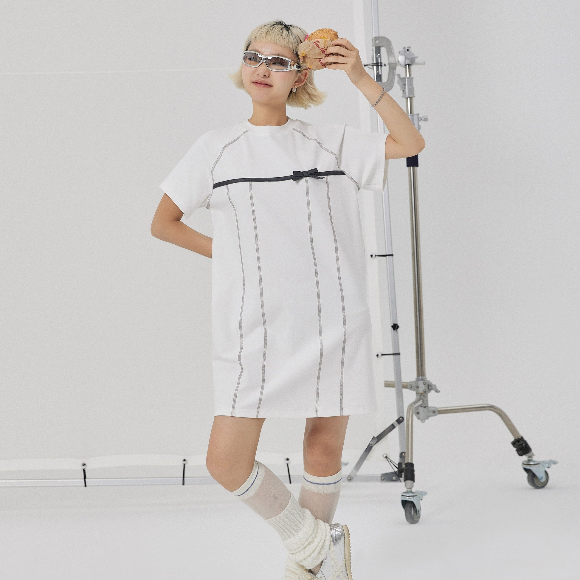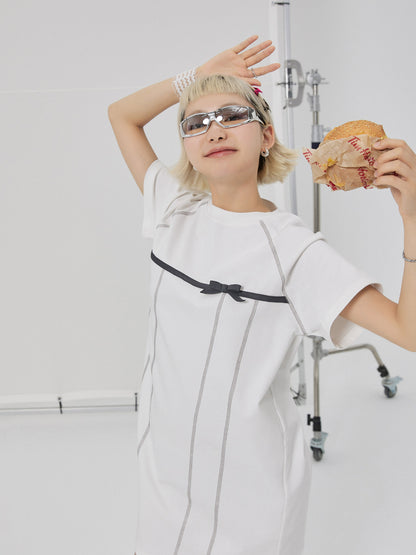 3D Bow Contrast Short Sleeve Straight T-Shirt Dress NA8237