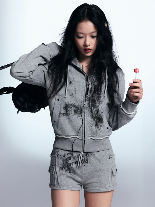 Graffiti Design Zipper Hoodie & Shorts Setup NA6026