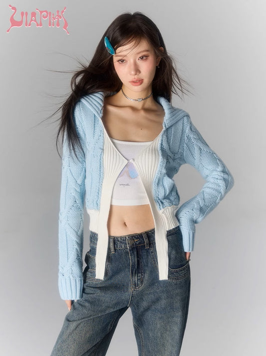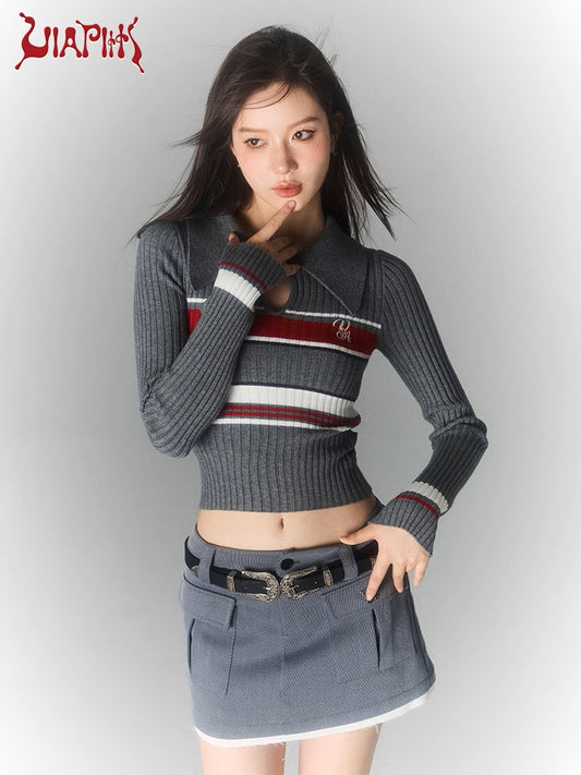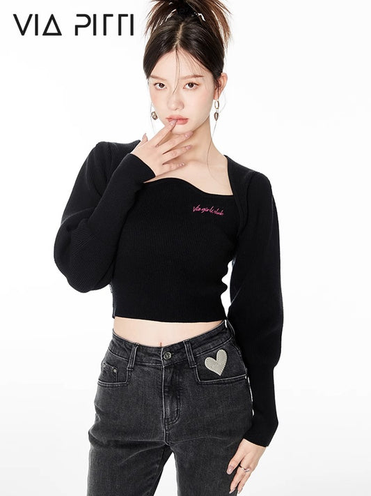 Wave Neck Cropped Long Sleeve Knit Top NA4945