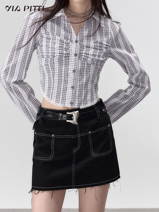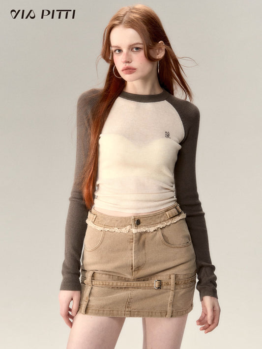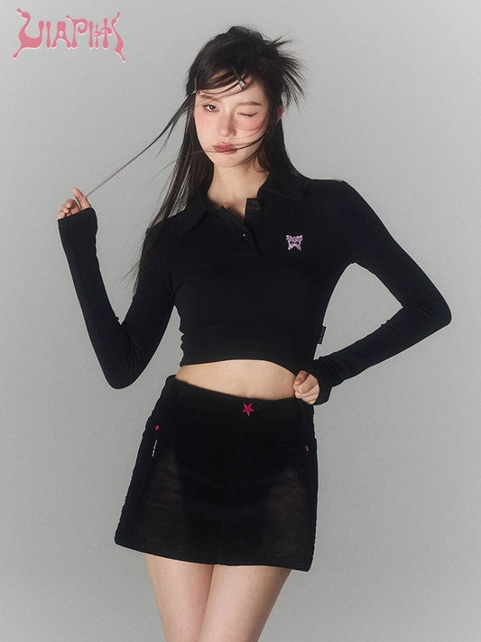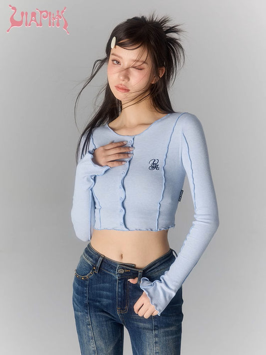 Wave Edge Cropped Long Sleeve T-shirt NA4925