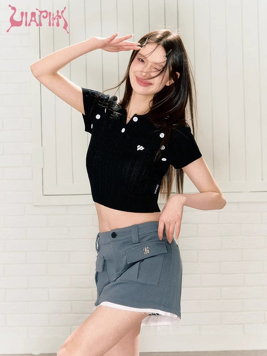 Polo Collar Twists Knit Short Sleeve T-shirt NA4898