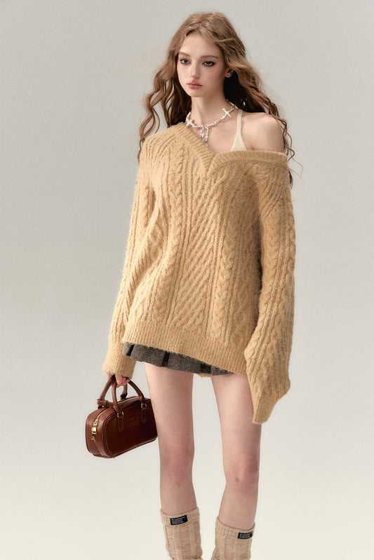 Twists Pattern Reversible V-neck Knit Cardigan NA4897