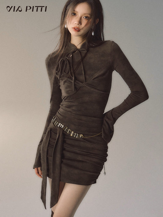Slanted Flap Pan Button Slim Fit Dress NA4885