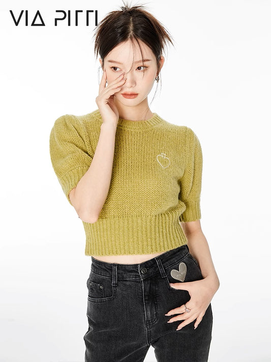 Bubble Sleeves Short Sleeve Knit Top NA4920