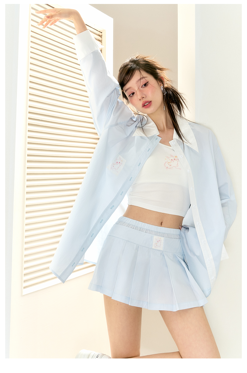 Long Sleeve Shirt & Graffiti Print Camisole NA4666