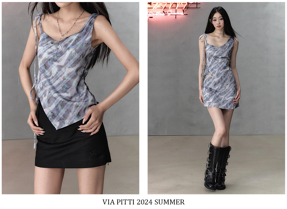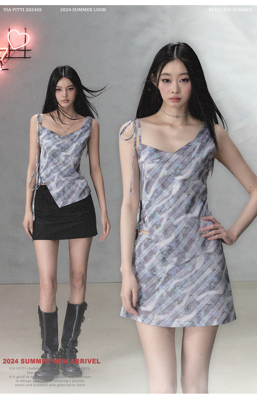 Colorful Plaid Camisole & A-Line Short Skirt Setup NA5038