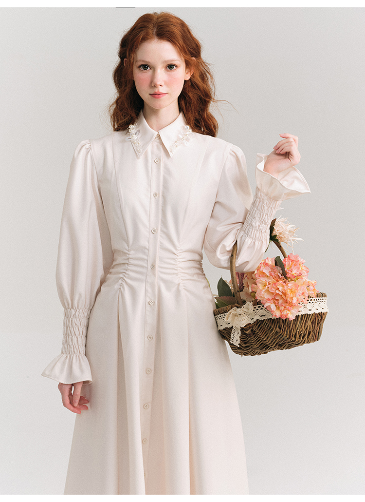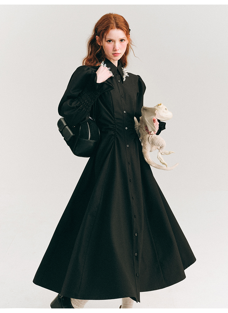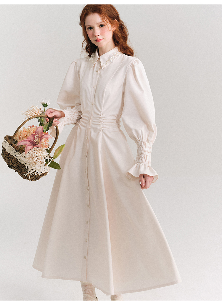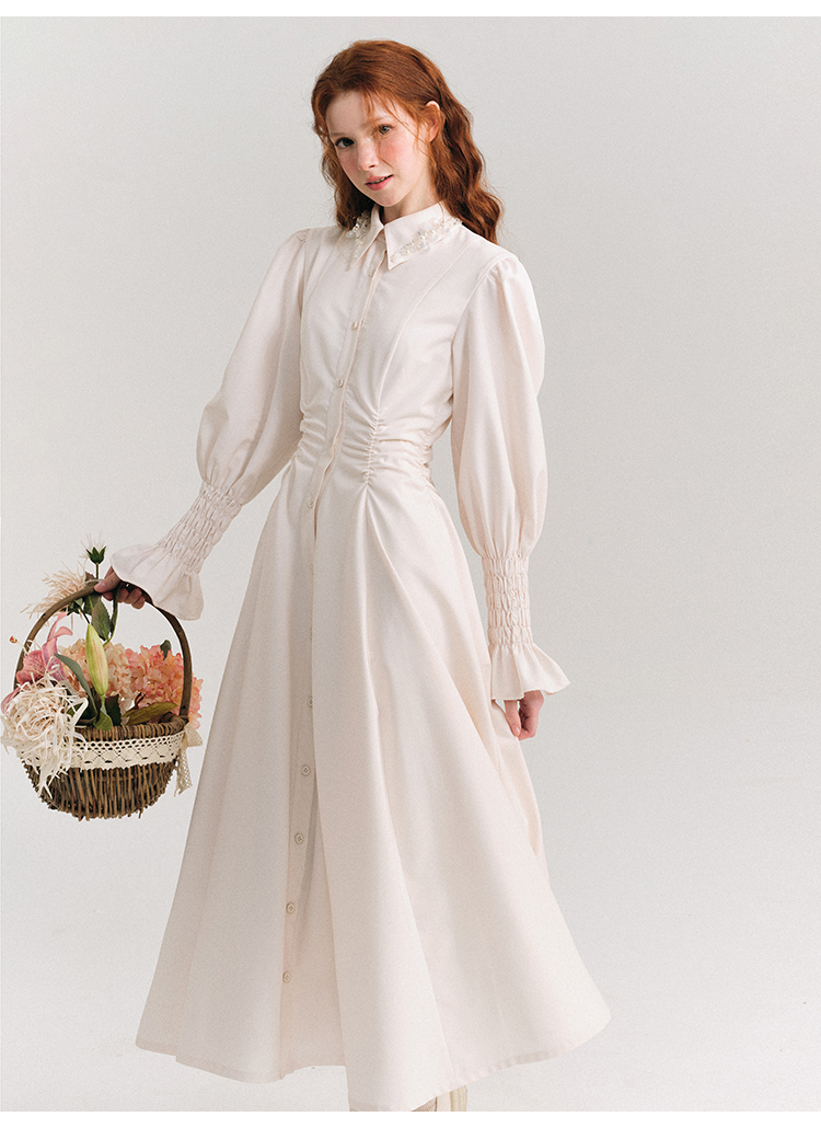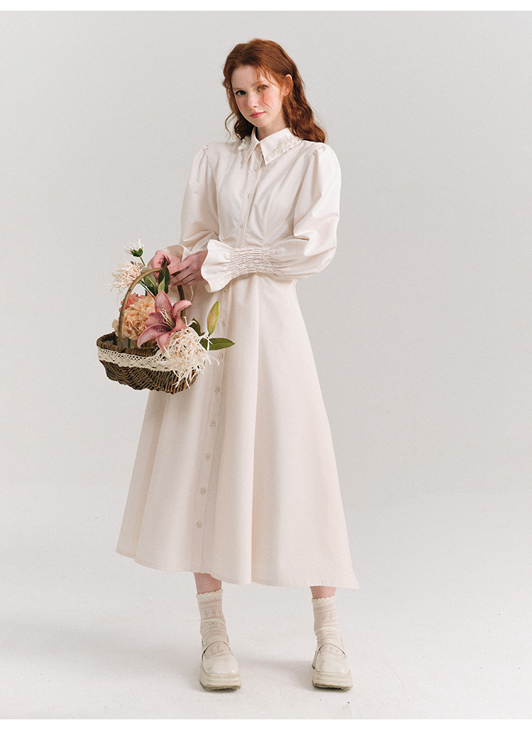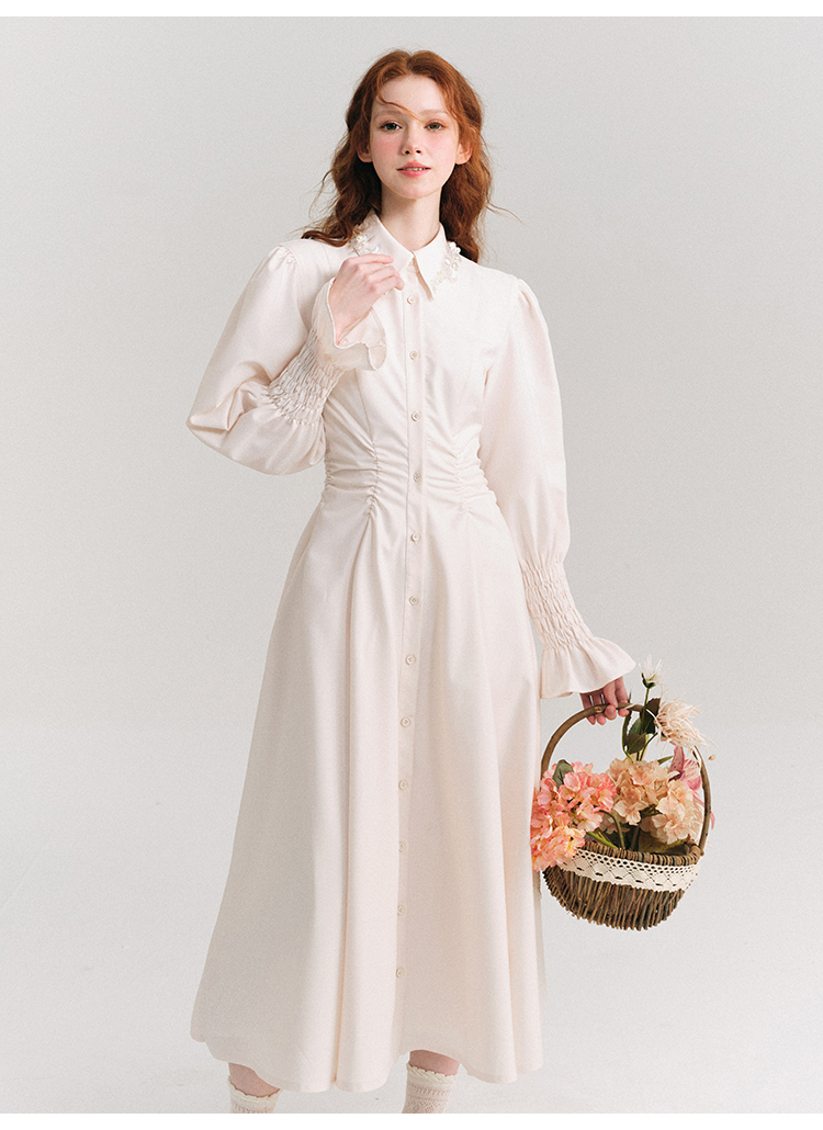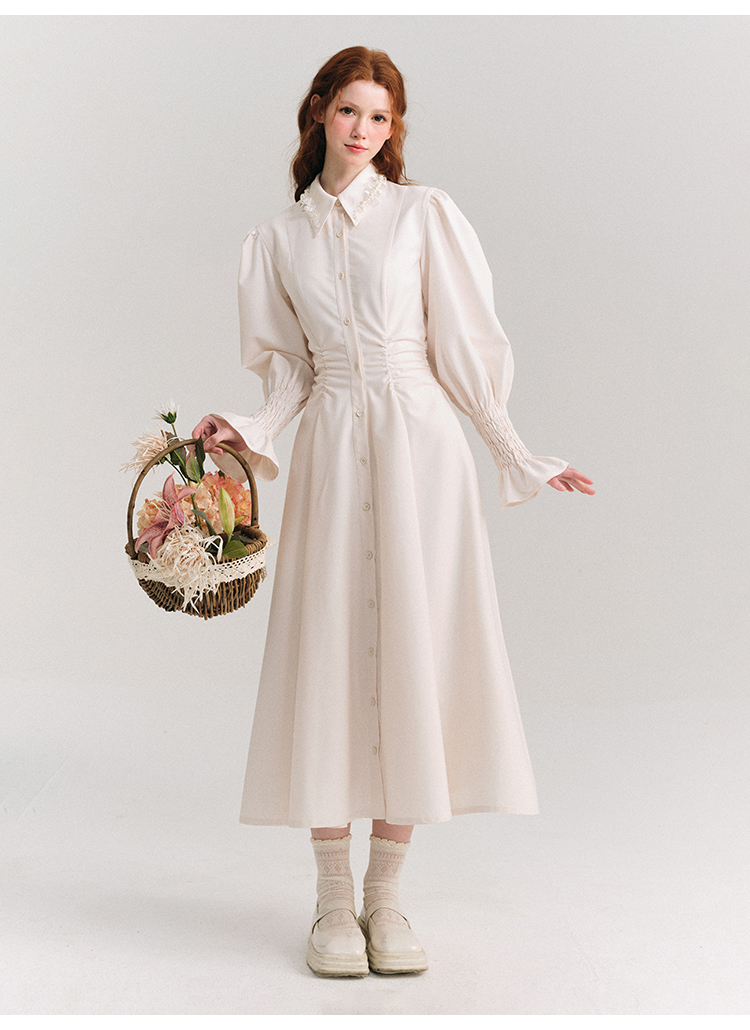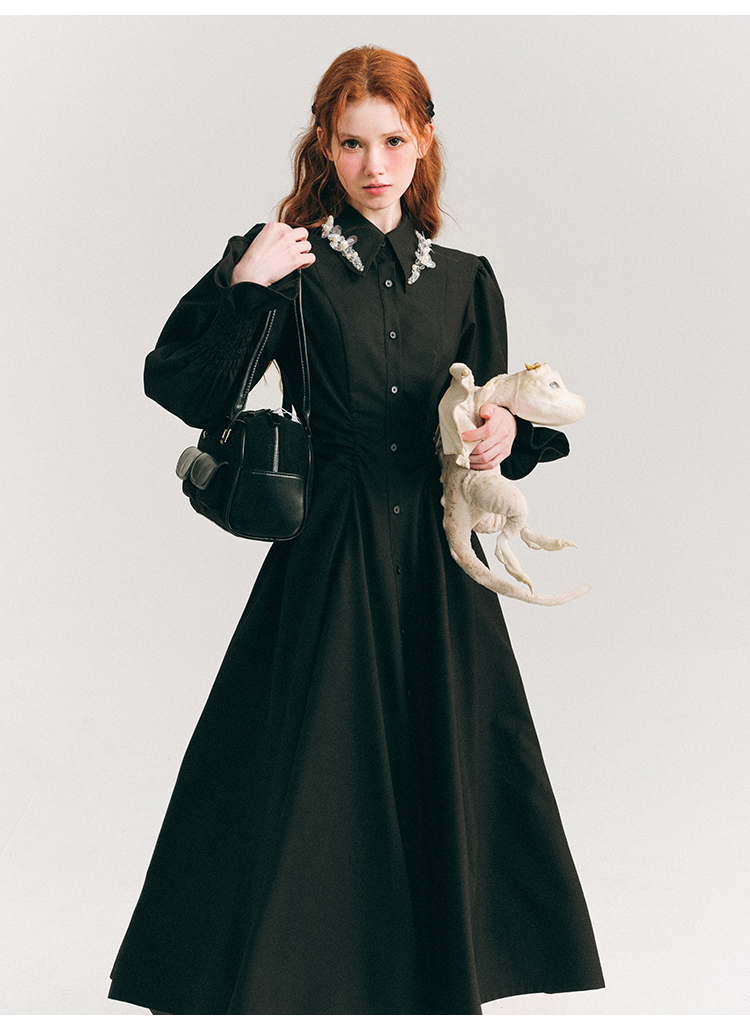 Candy Sleeve Waist Mark Polo Collar Shirt Dress NA5918