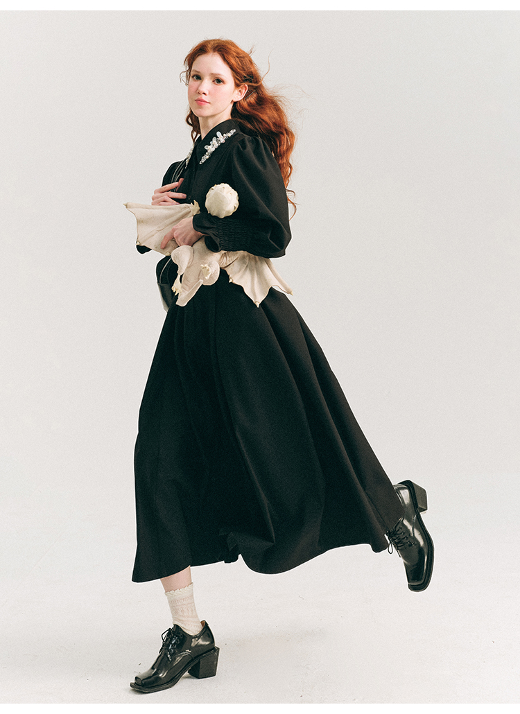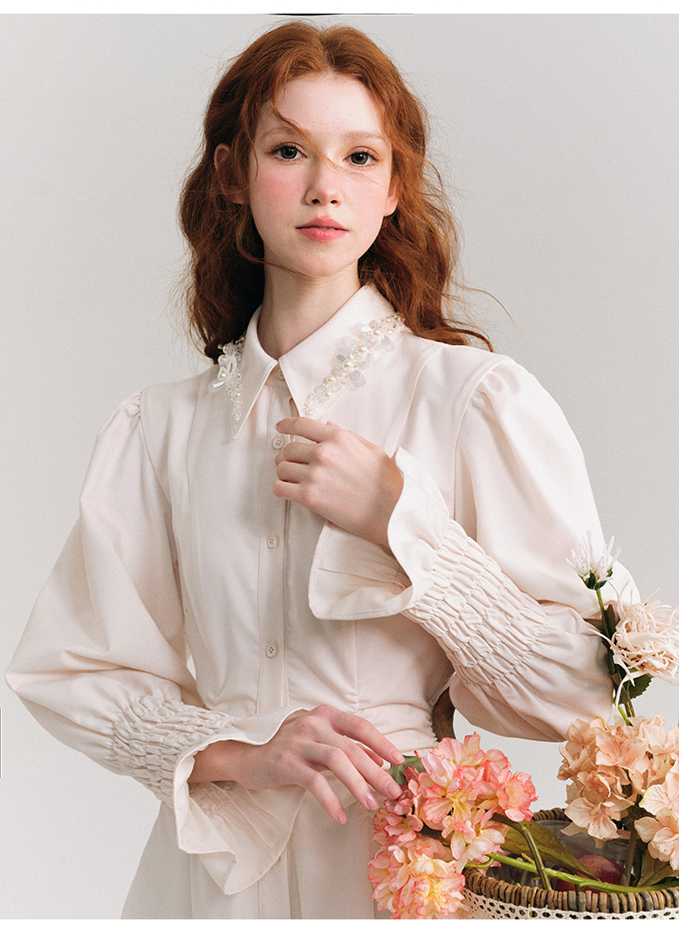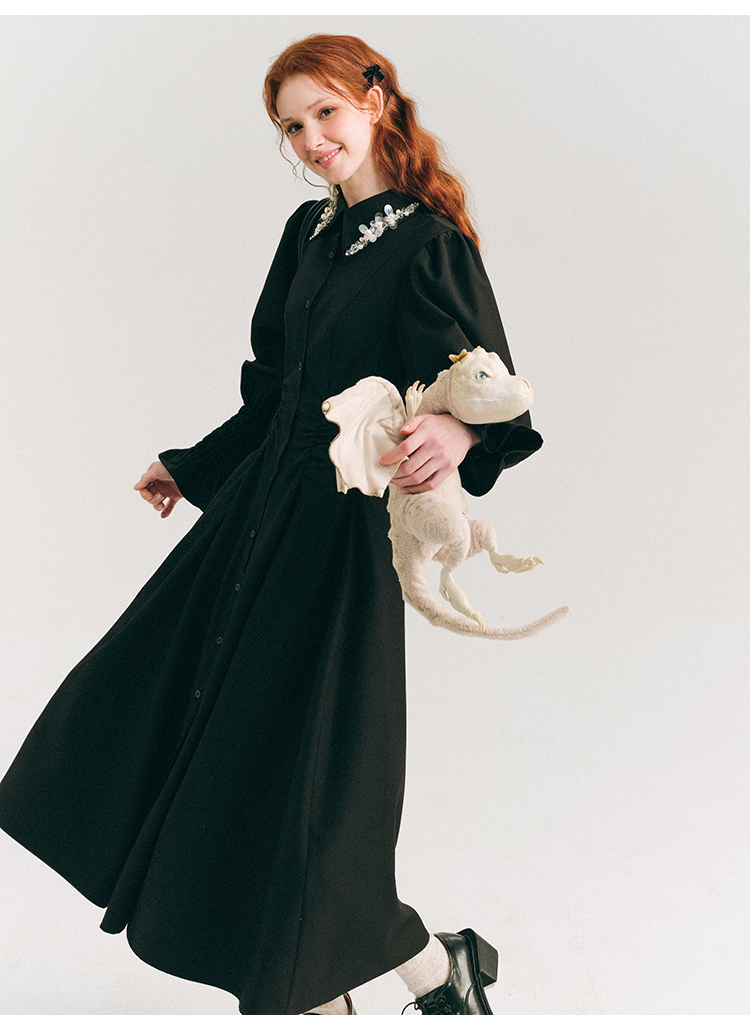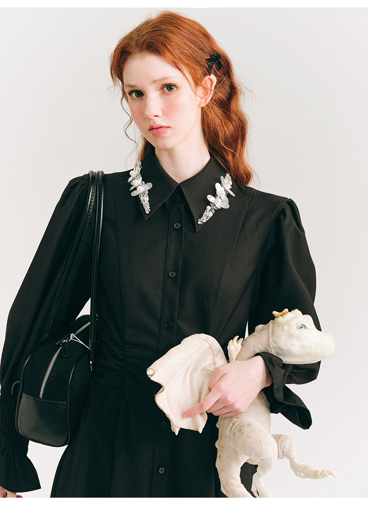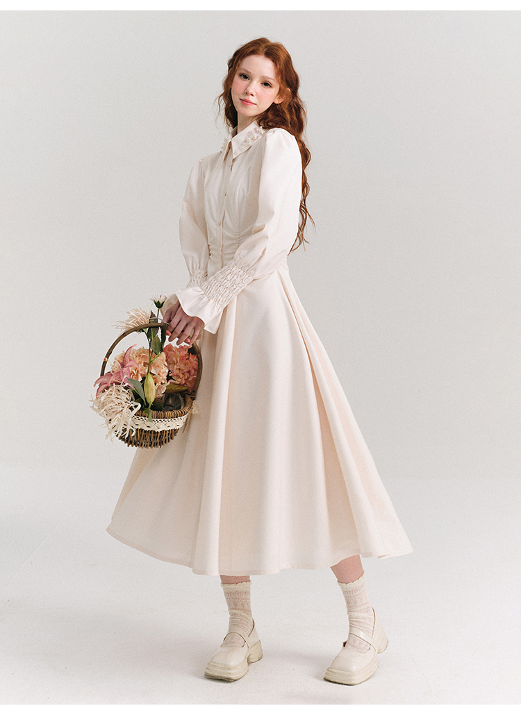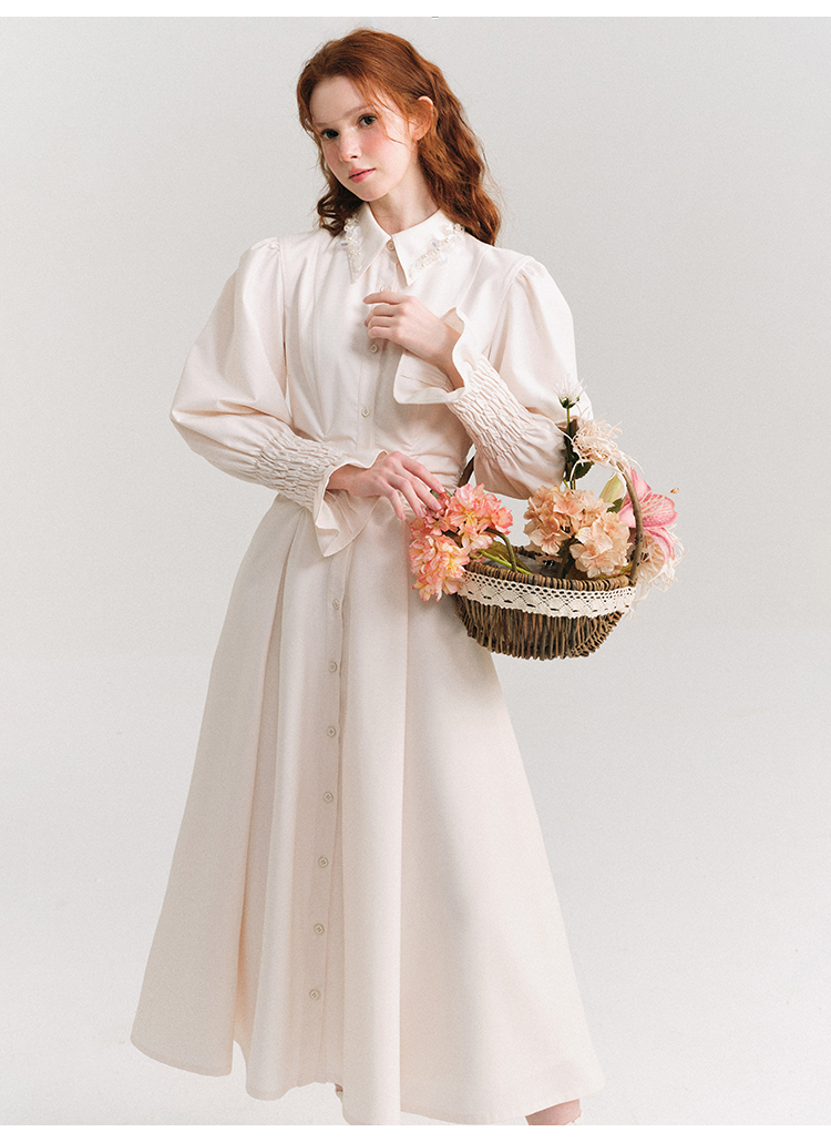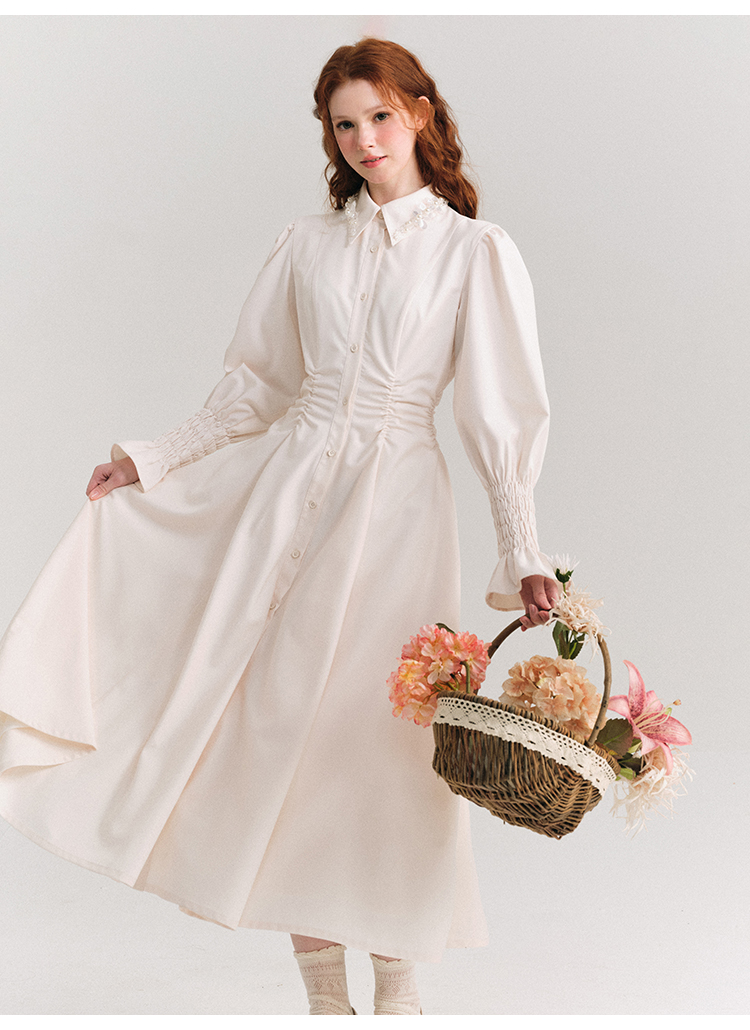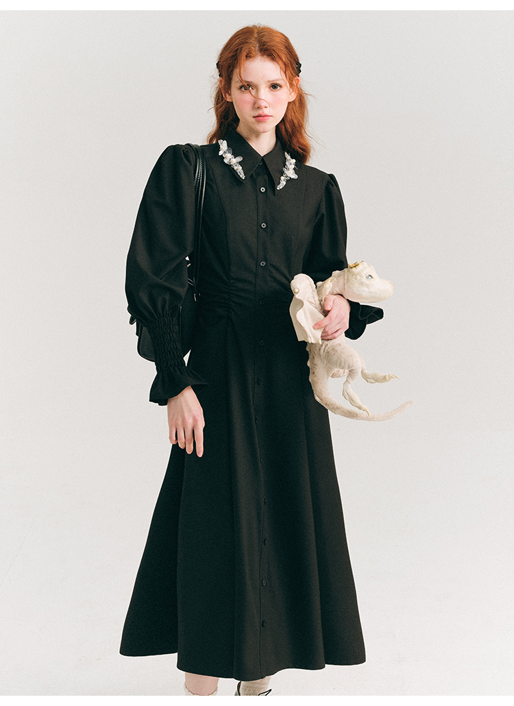 Candy Sleeve Waist Mark Polo Collar Shirt Dress NA5918