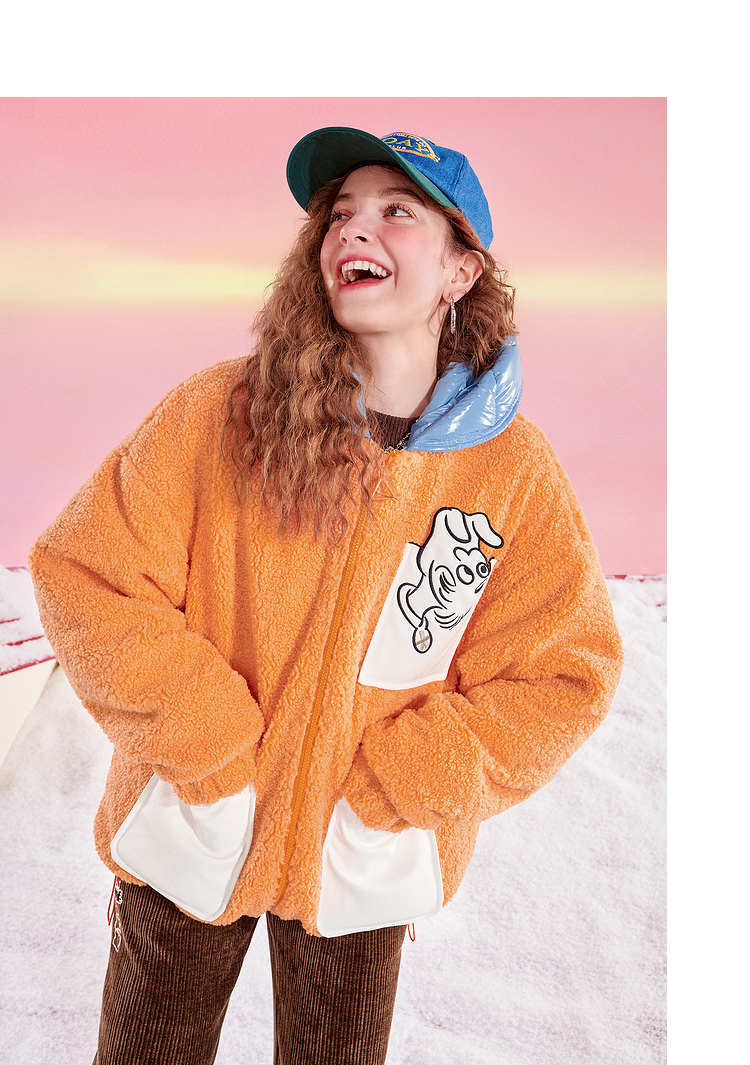 PU Patchwork Cartoon Sherpa Hooded Padded Jacket NA6743