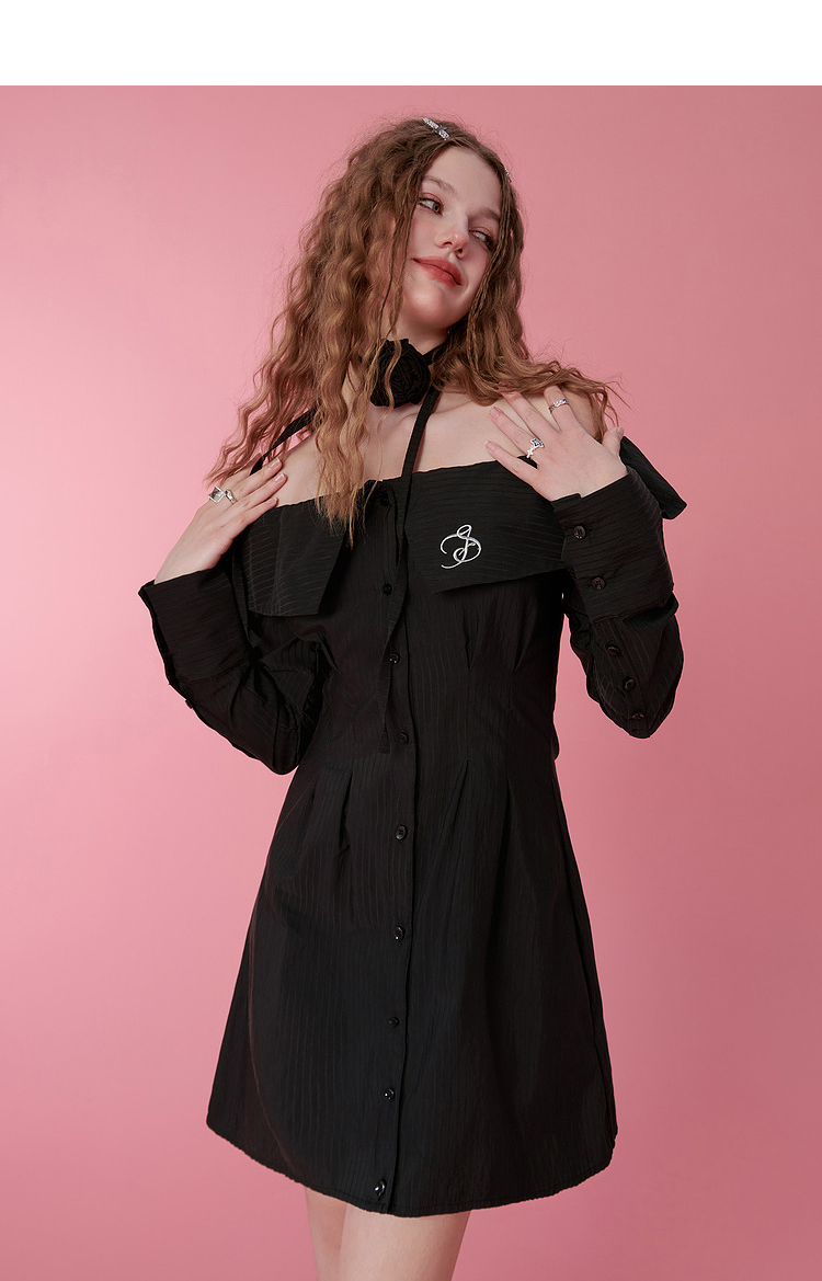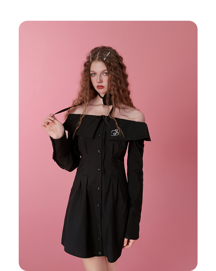 Off-Shoulder Collared Long Sleeve Dress NA6765