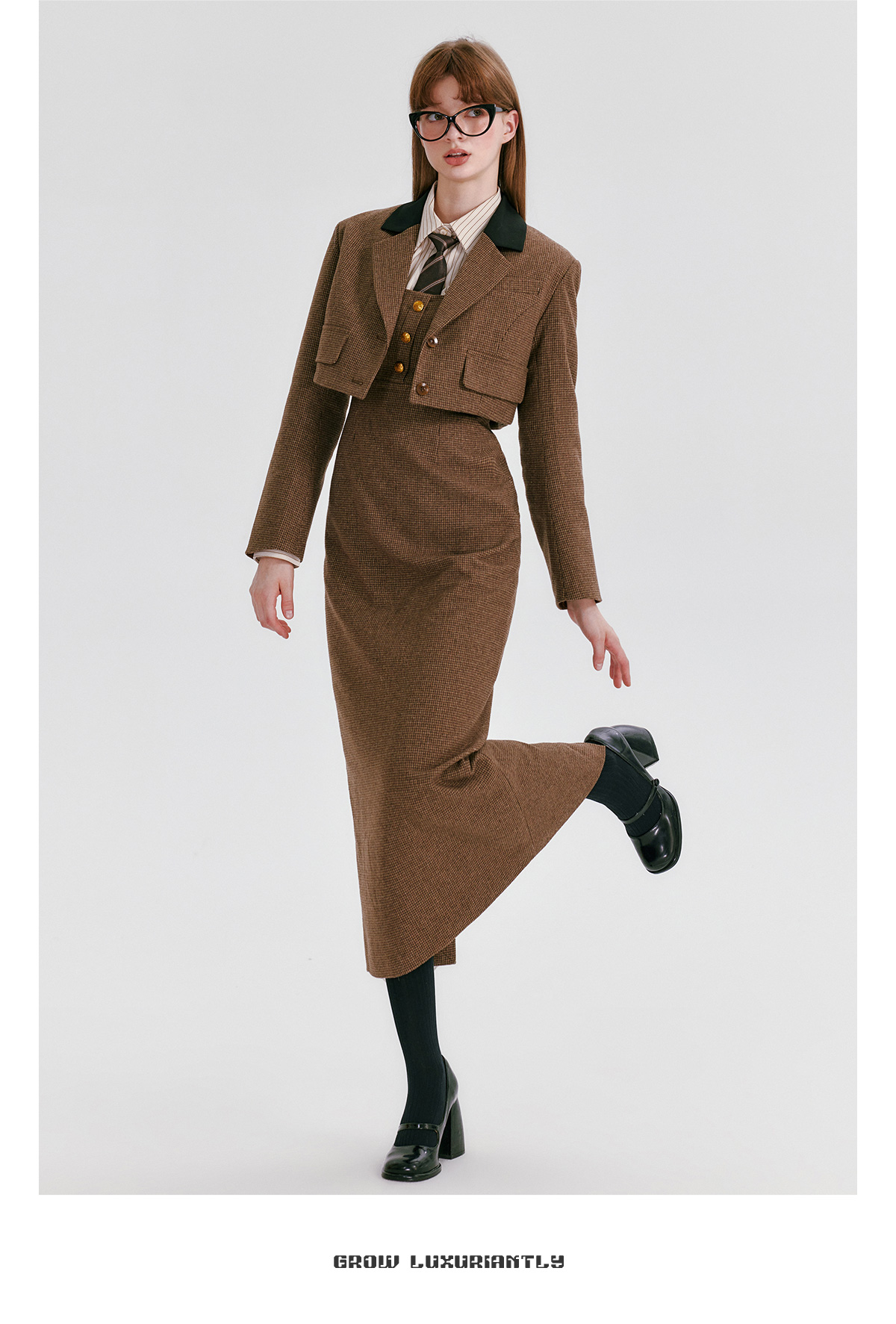 Wool Tailored Jacket & Long Skirt Setup NA7053