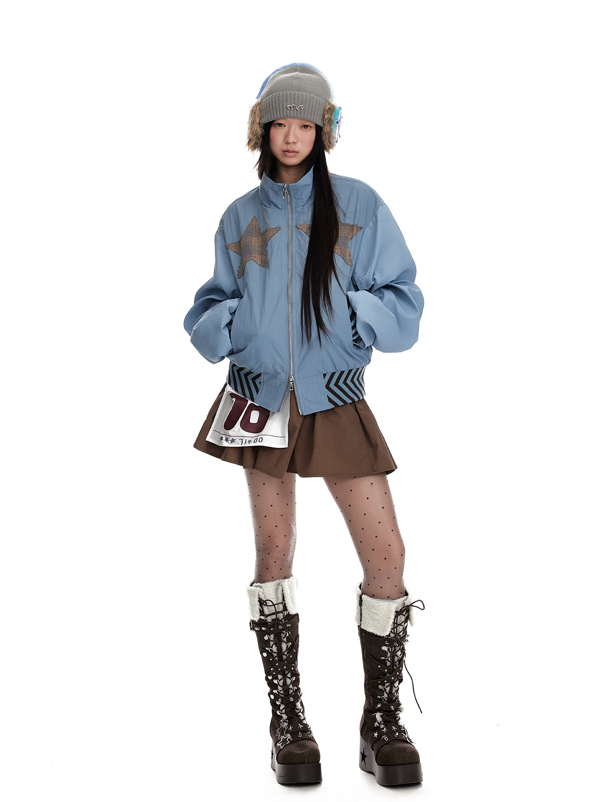Stand Neck Double Zipper Oversize Jacket NA7065