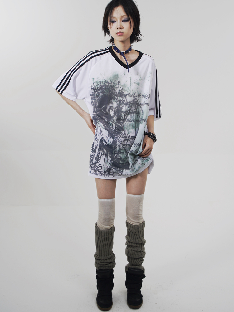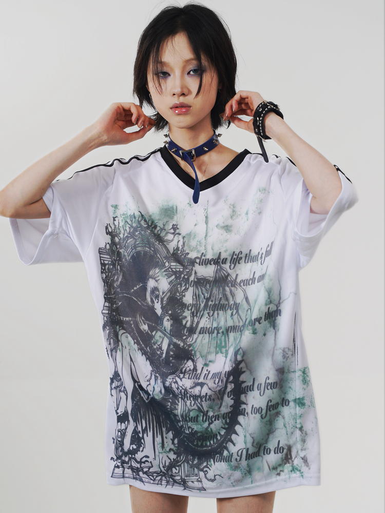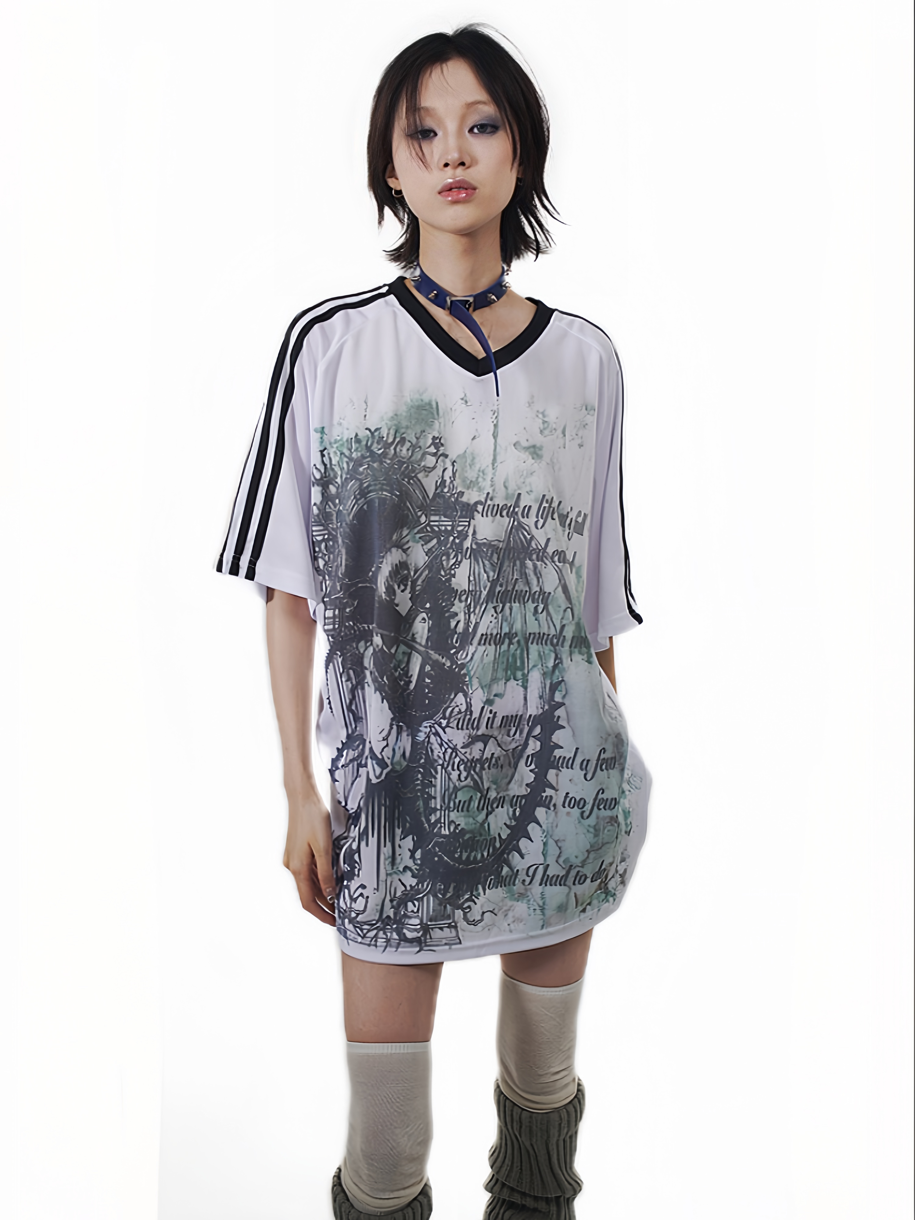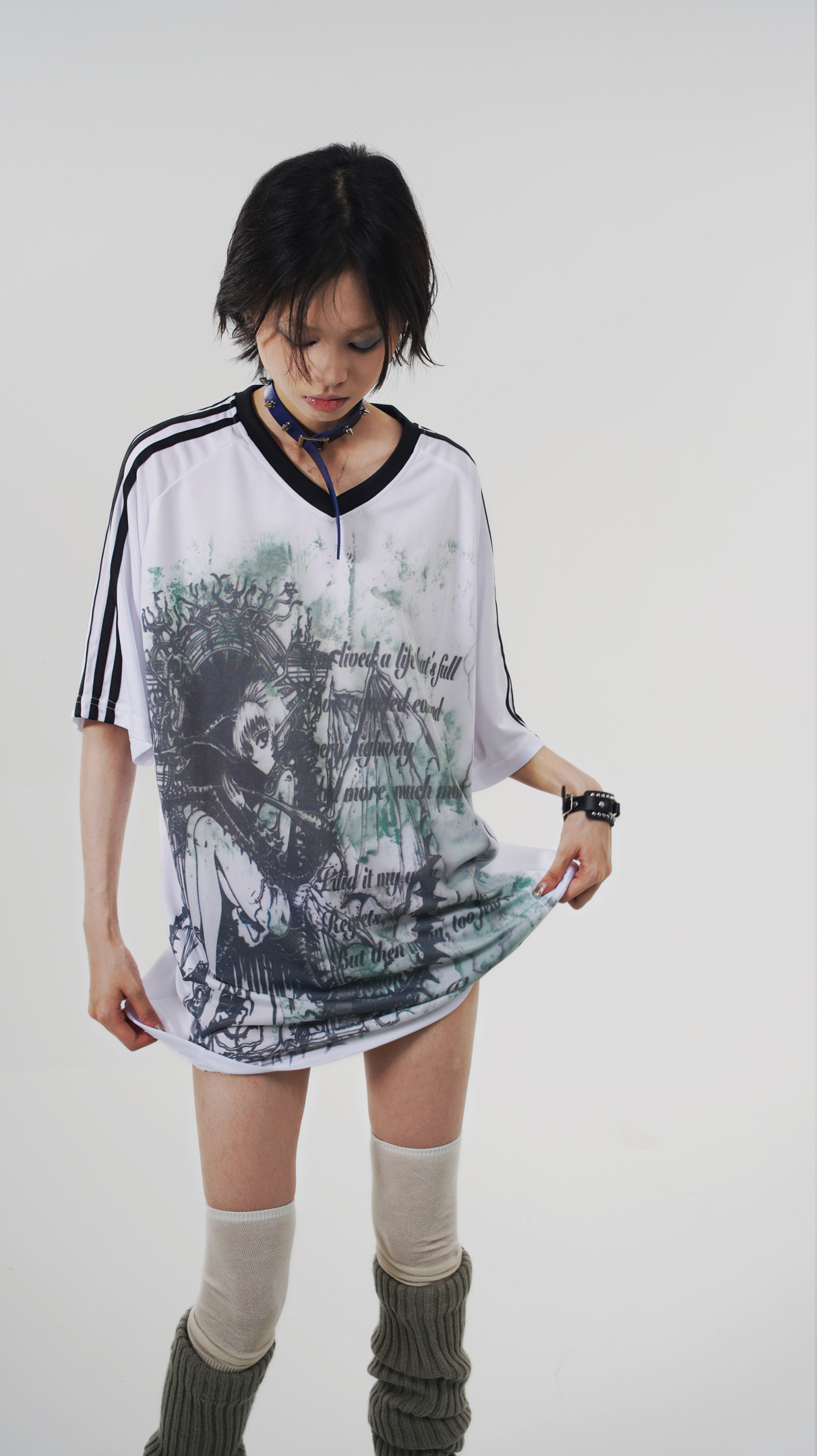 Anime Print Oversize V-neck Short Sleeve T-Shirt NA7665