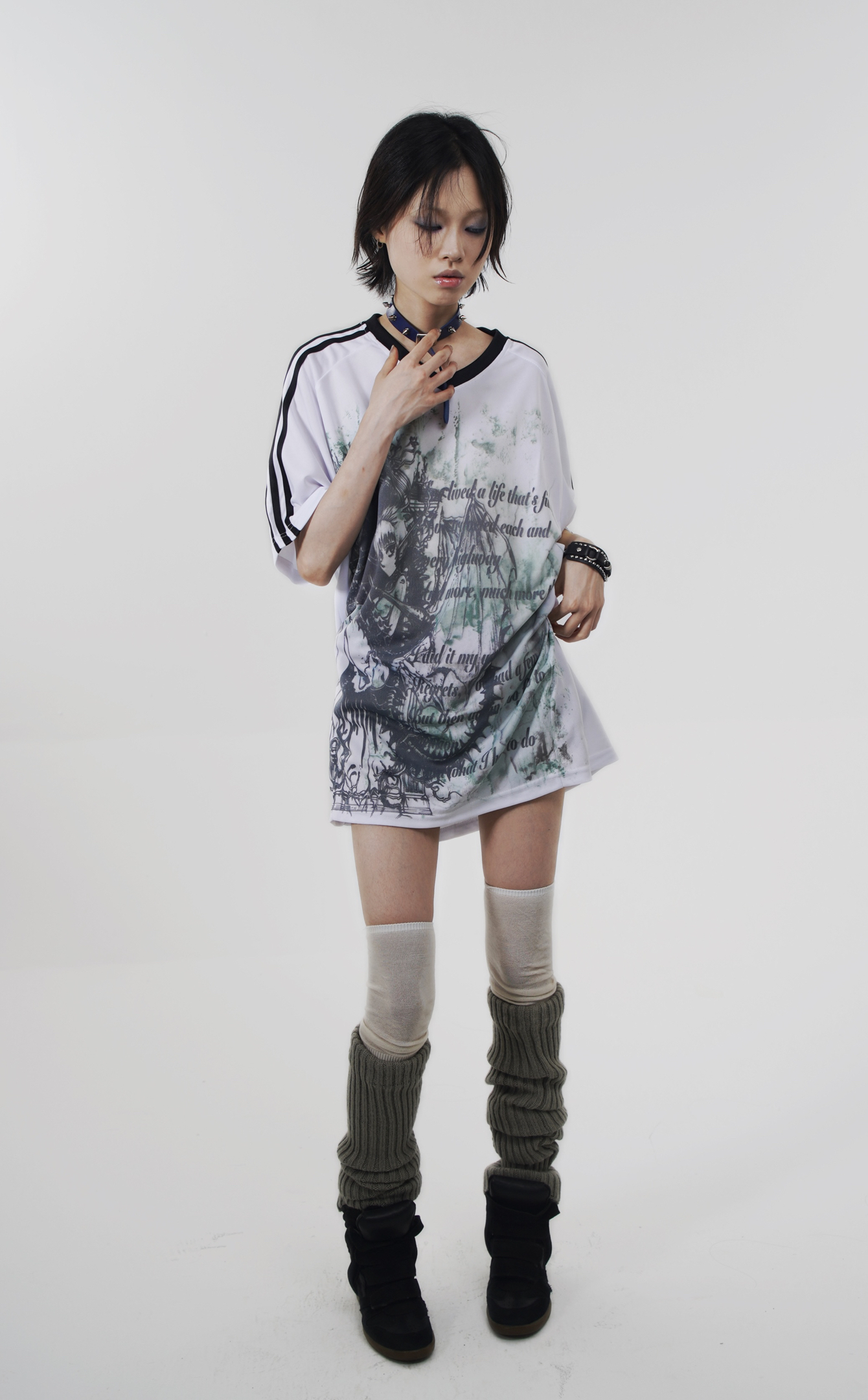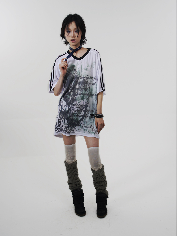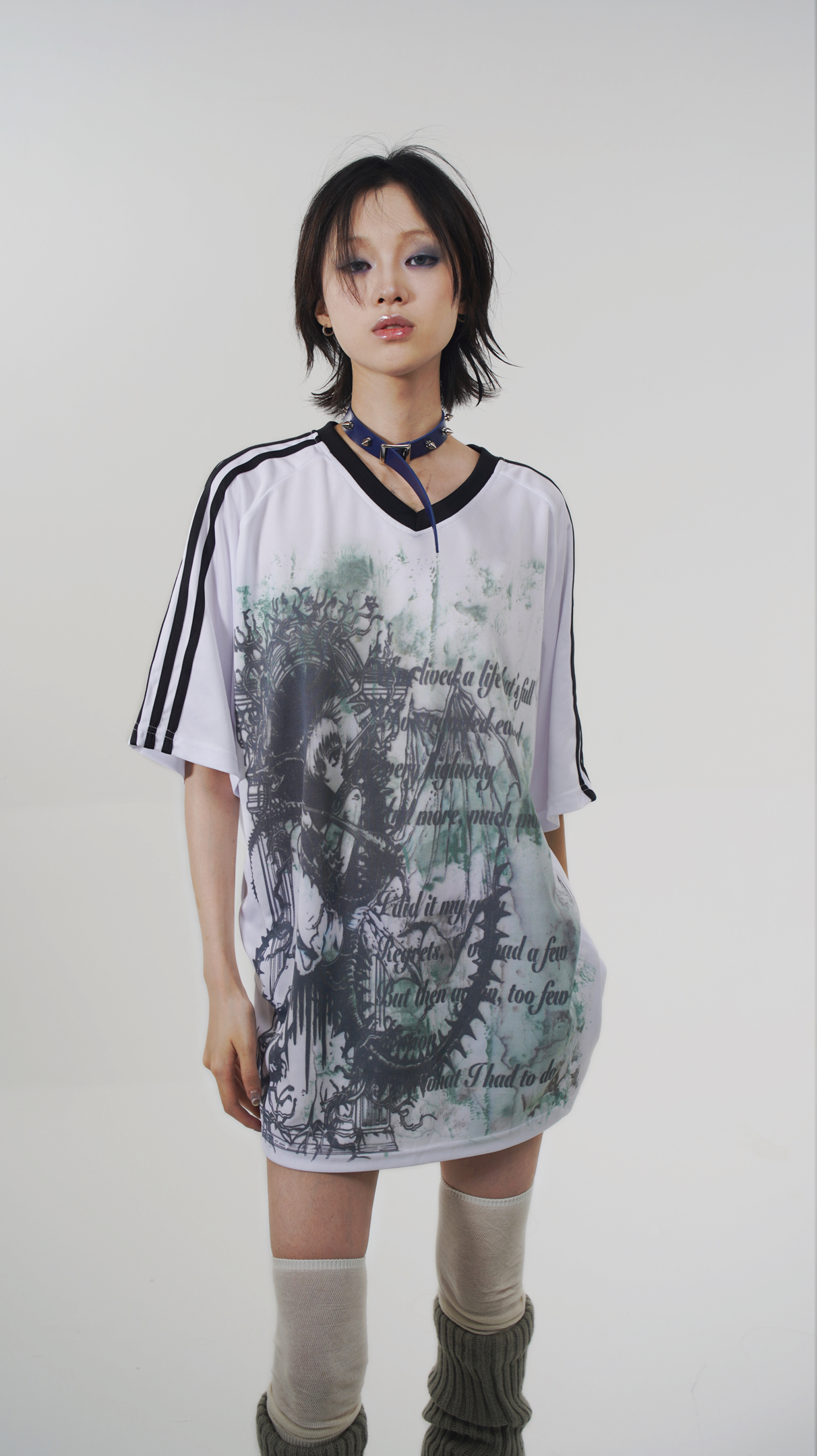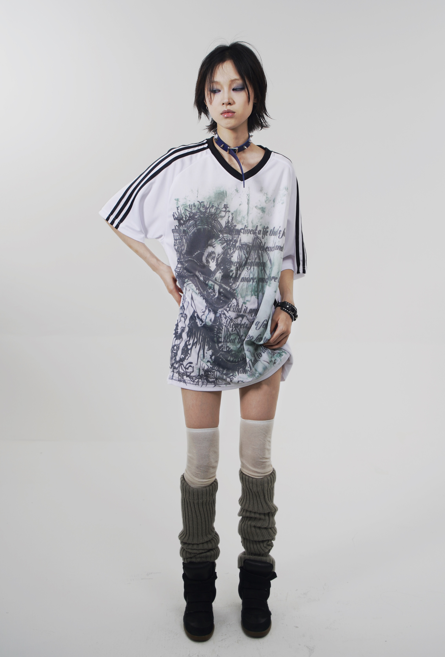 Anime Print Oversize V-neck Short Sleeve T-Shirt NA7665