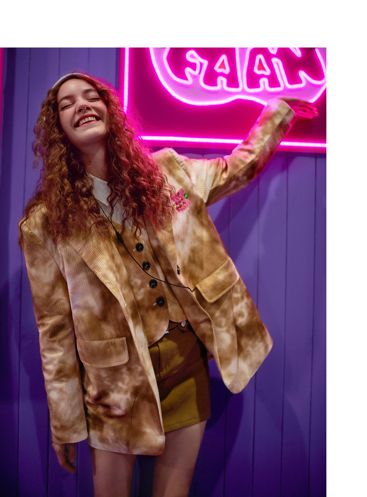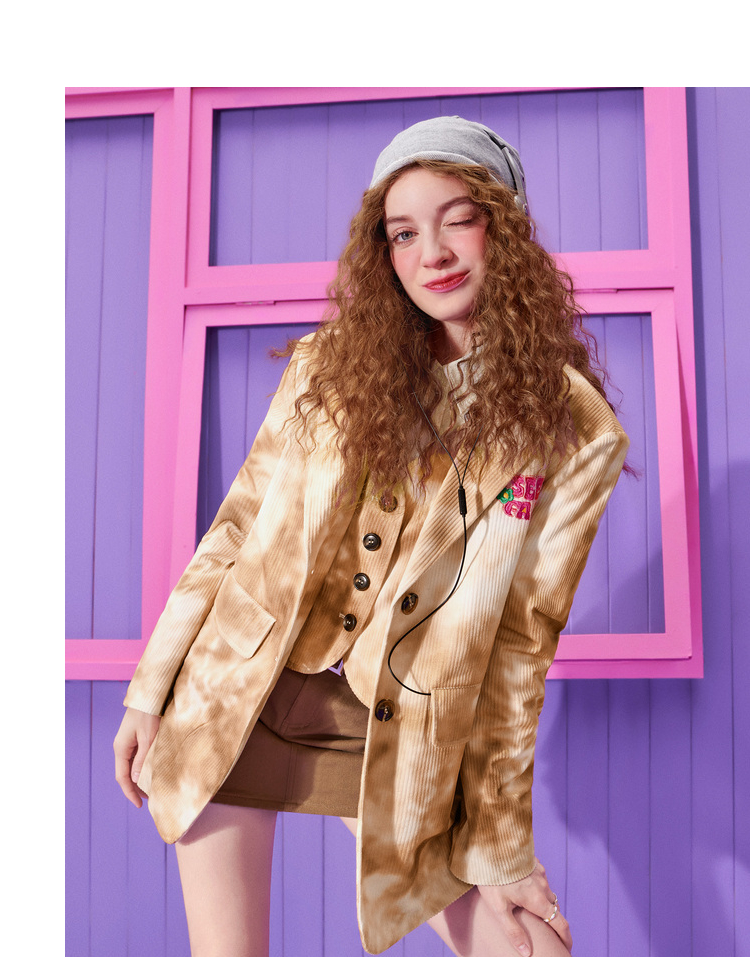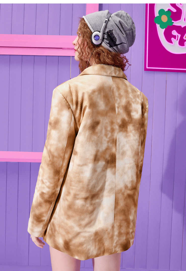 Tie-Dye Corduroy Fake Layered Tailored Jacket NA6731