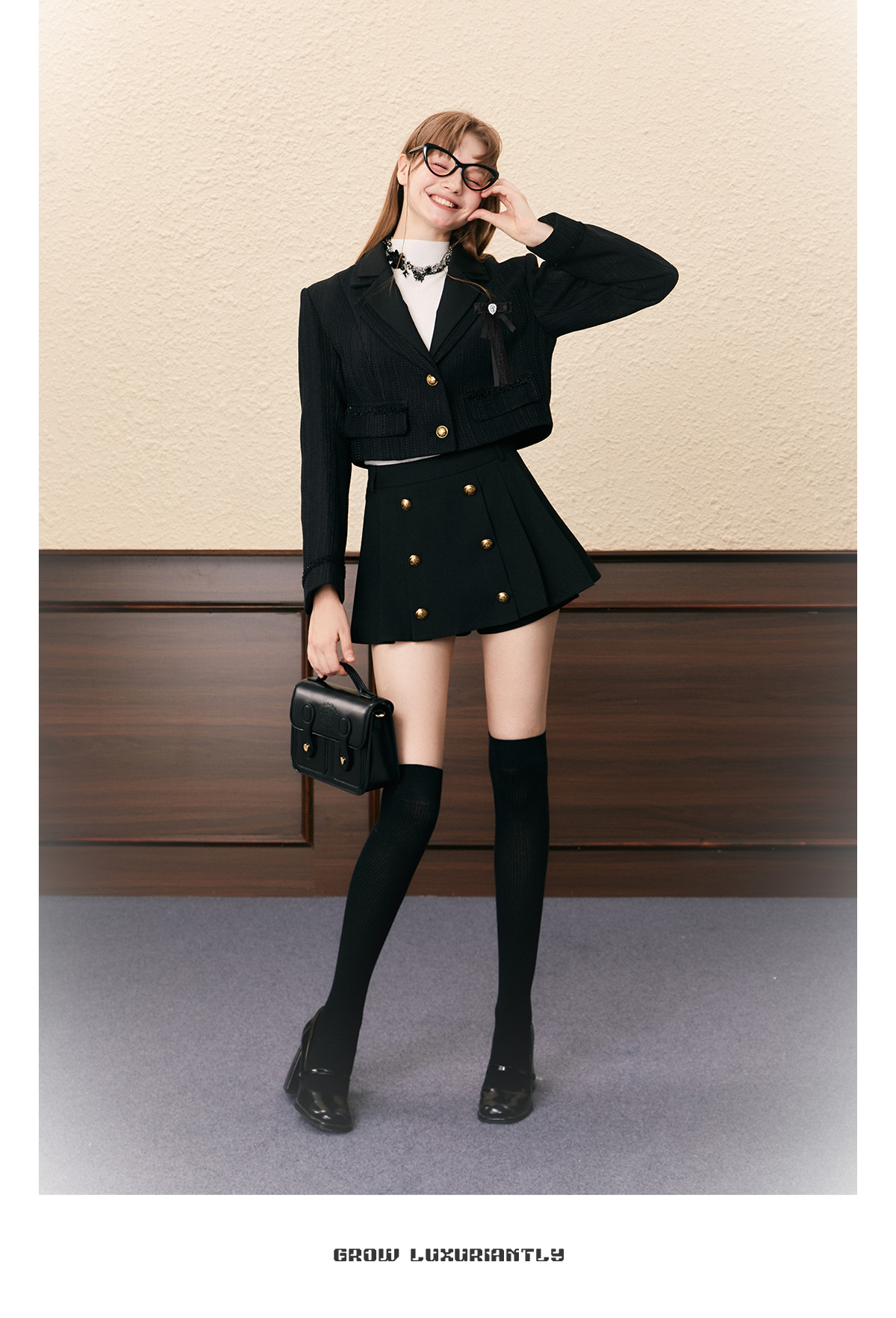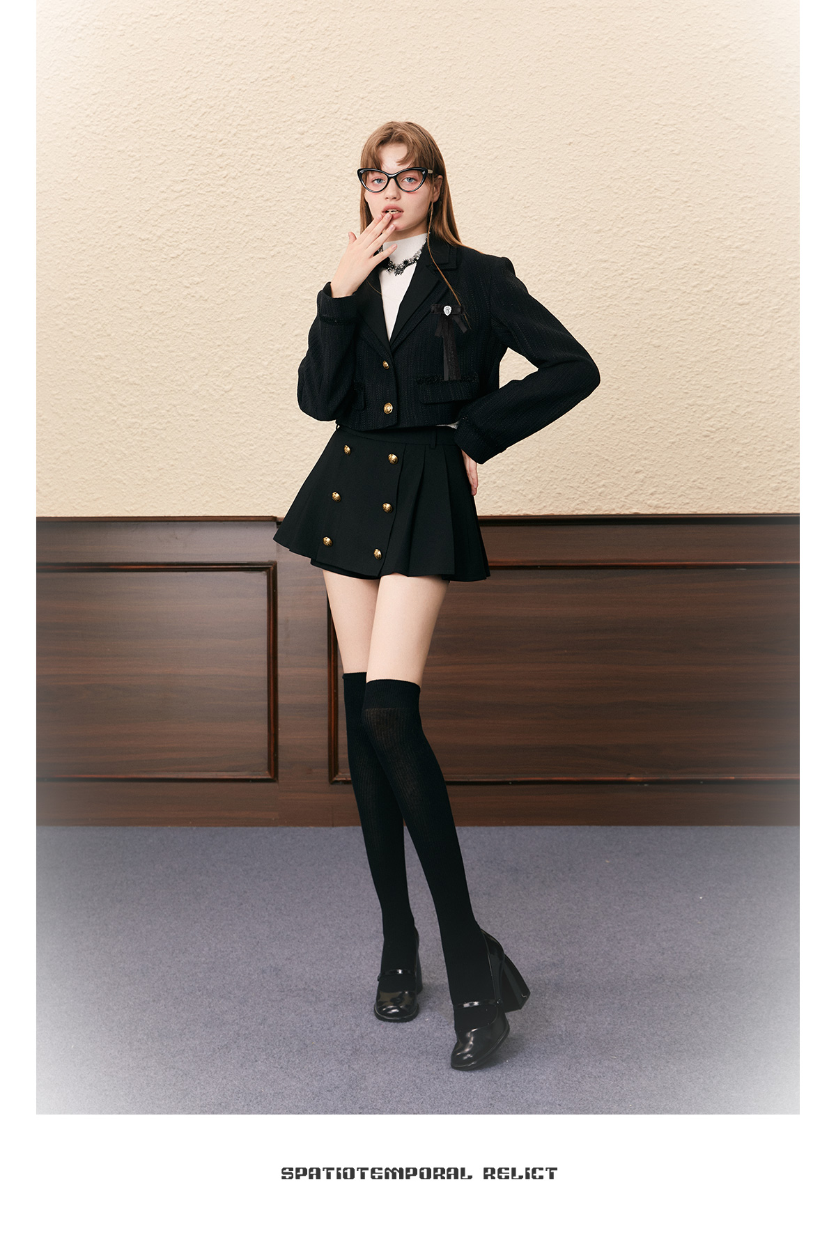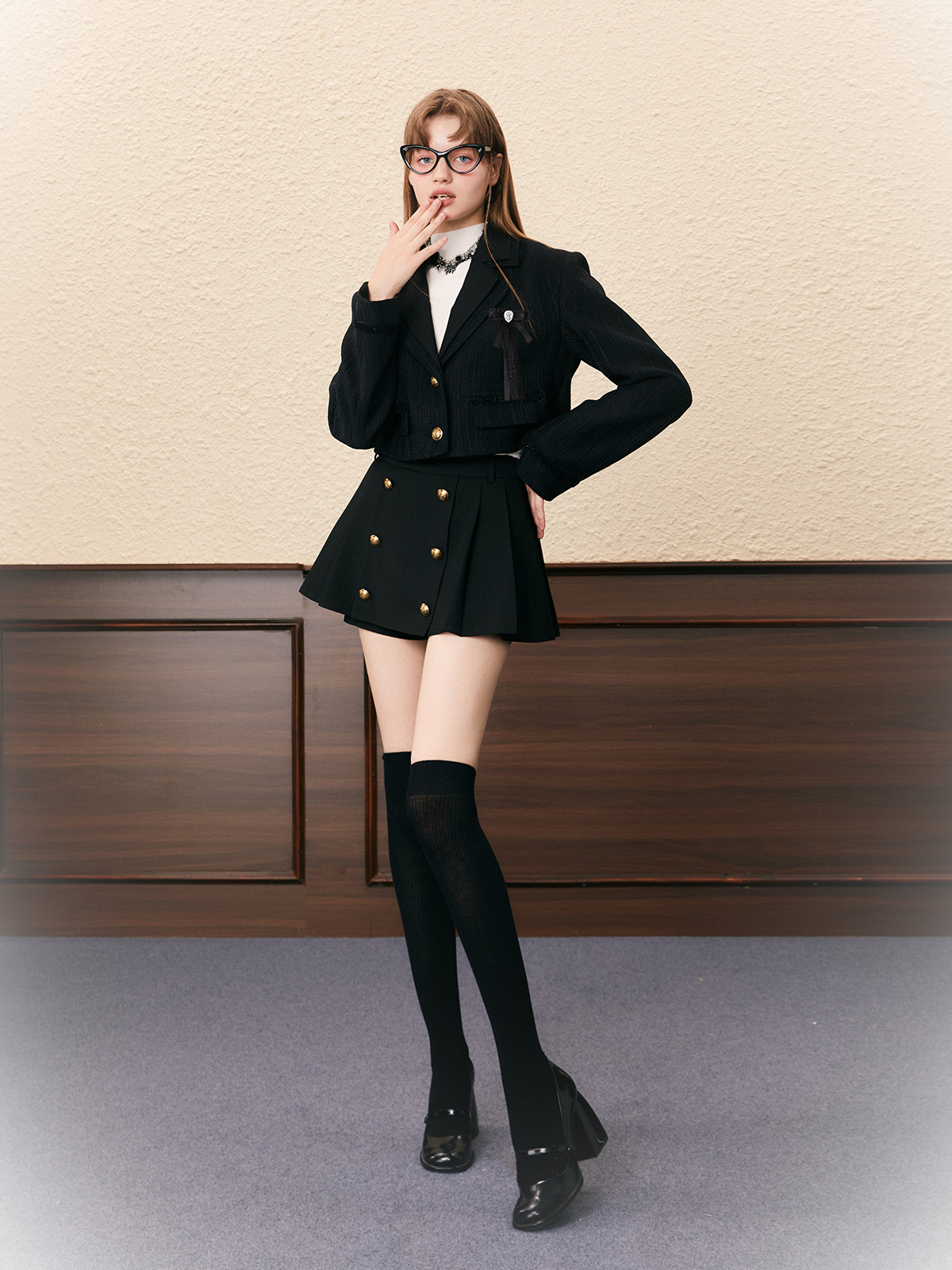 Black Tweed Jacket & Short Skirt Setup NA6997