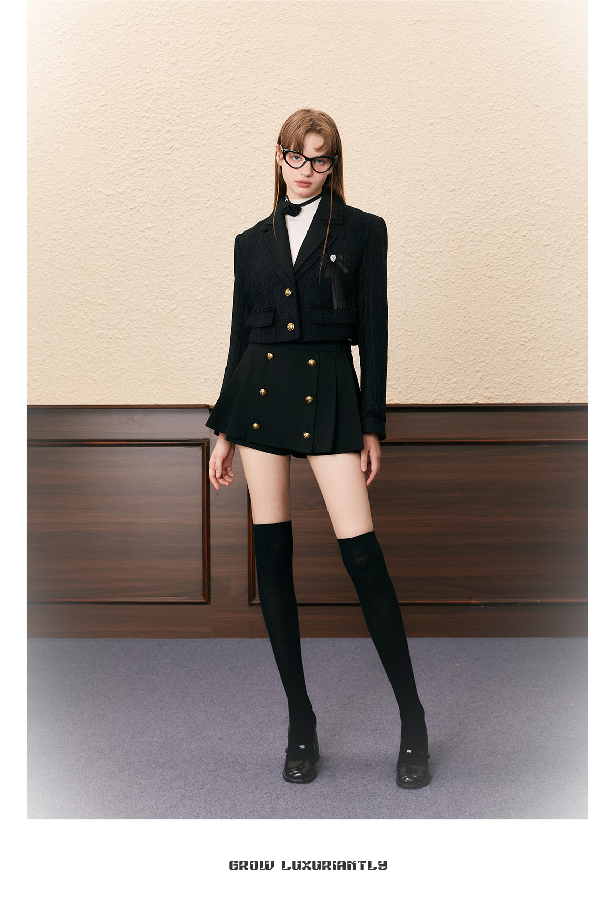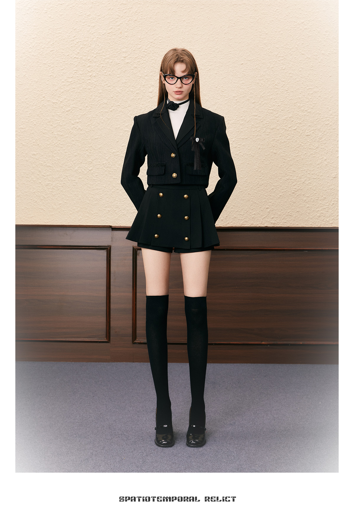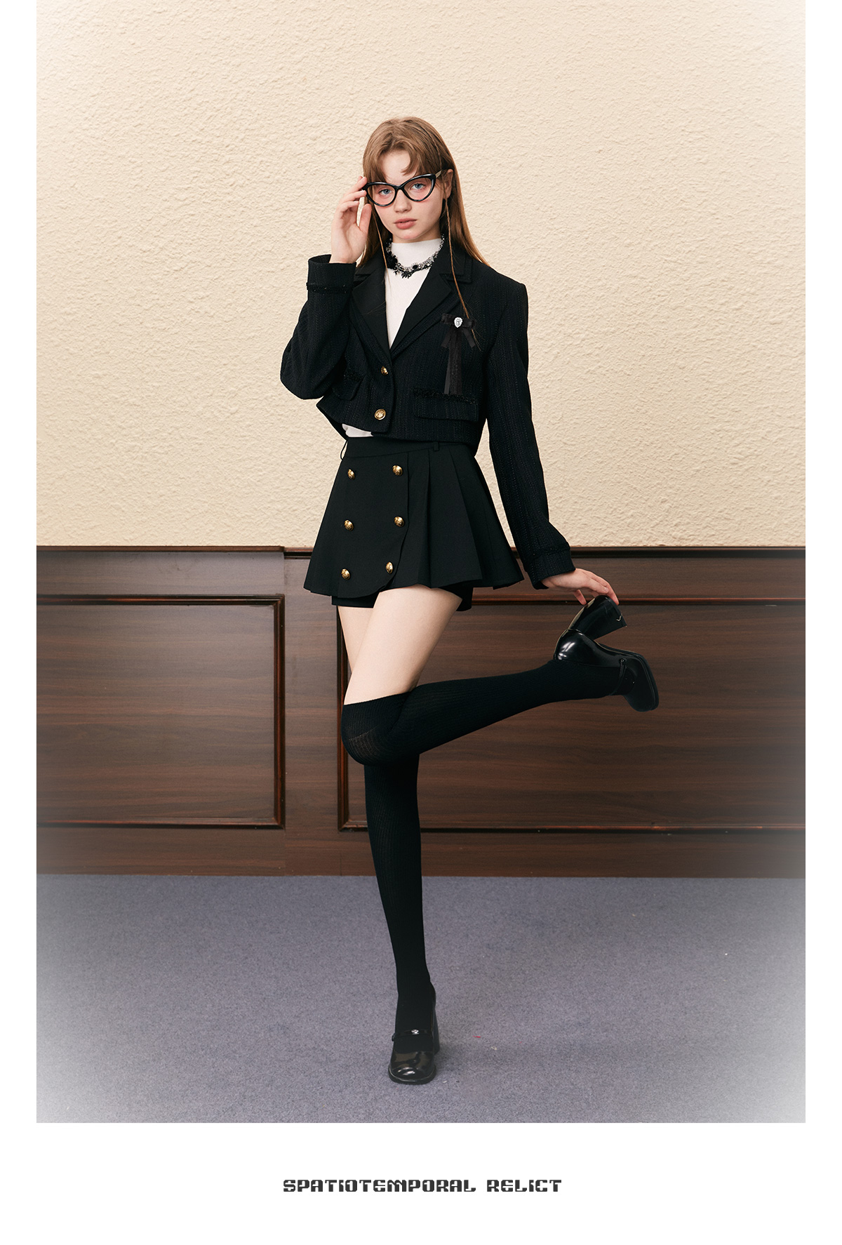 Black Tweed Jacket & Short Skirt Setup NA6997