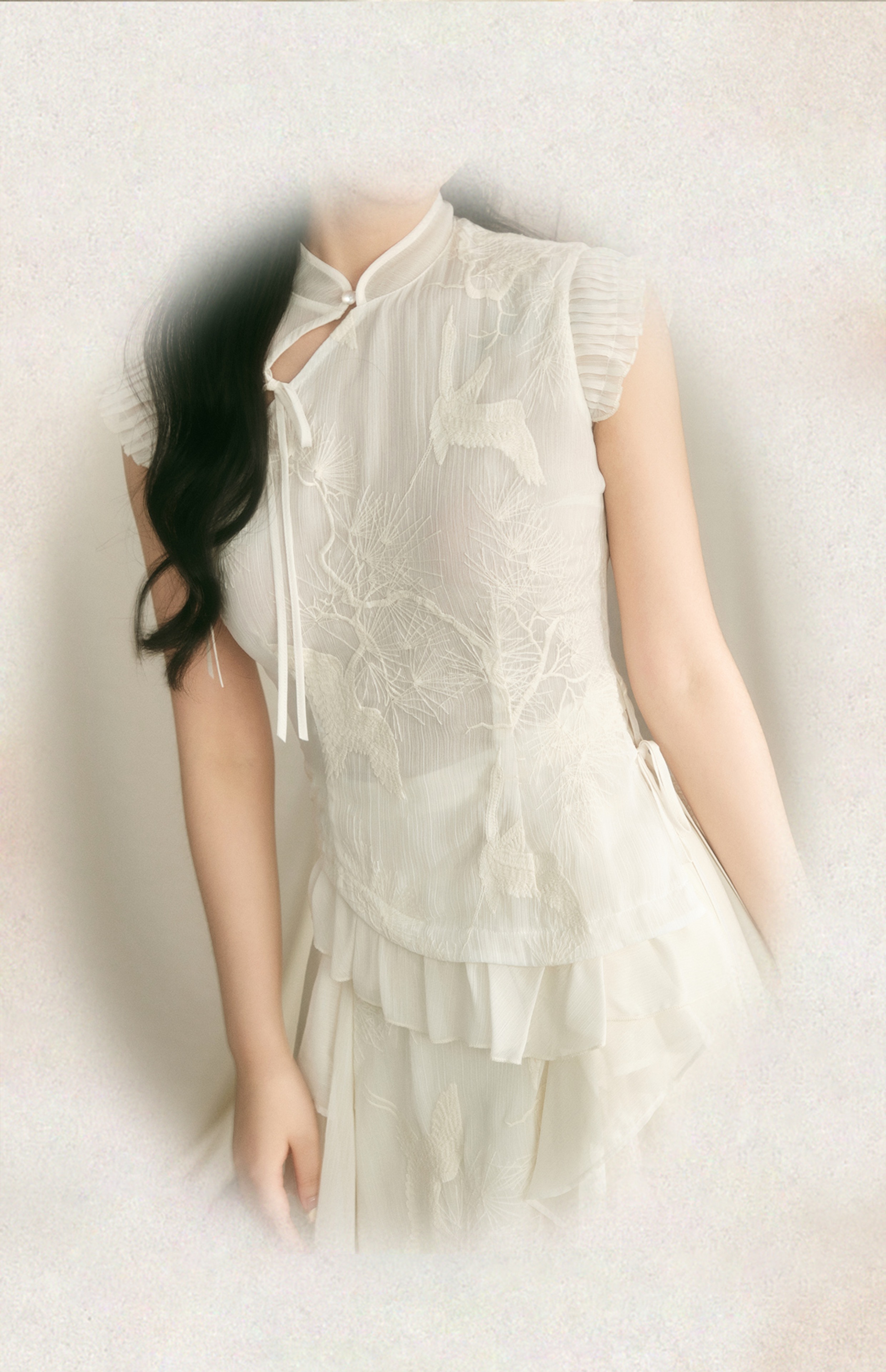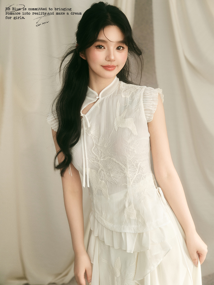 embroidery ruffle qipao Top