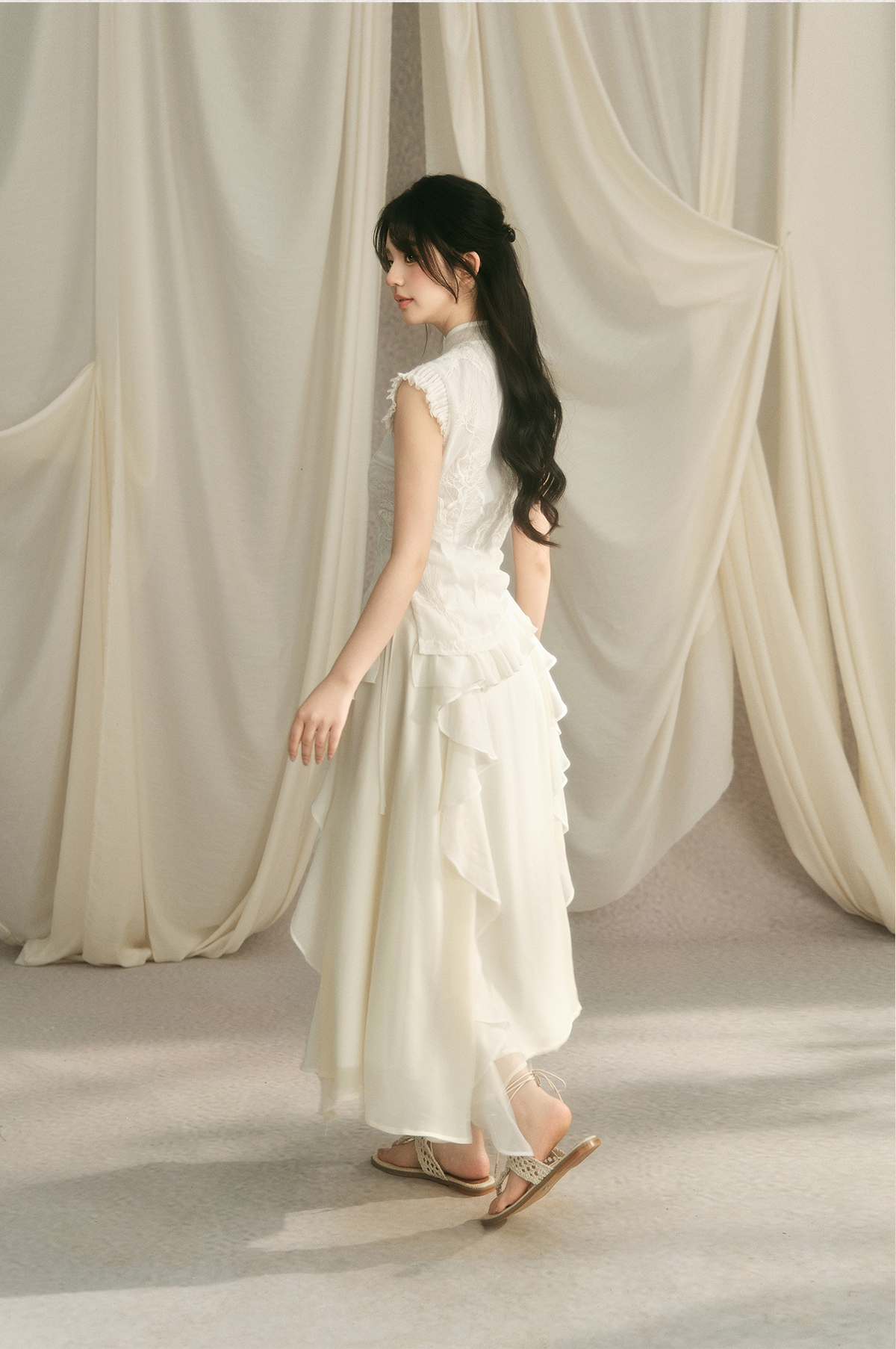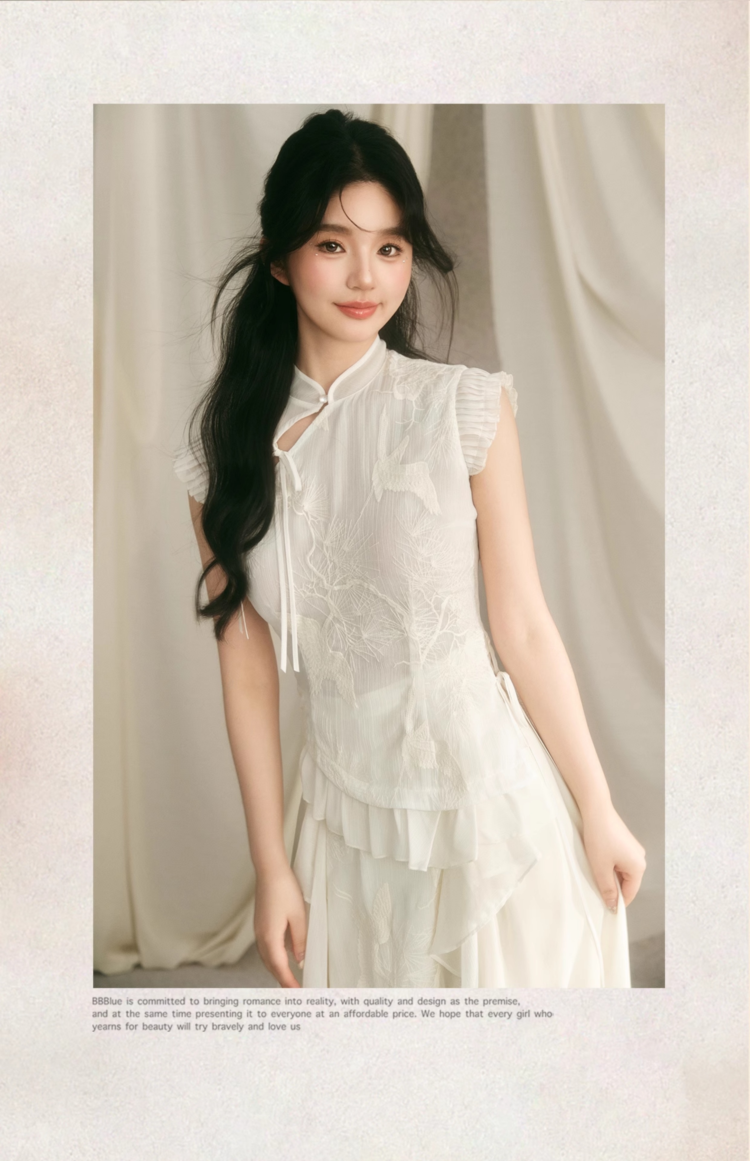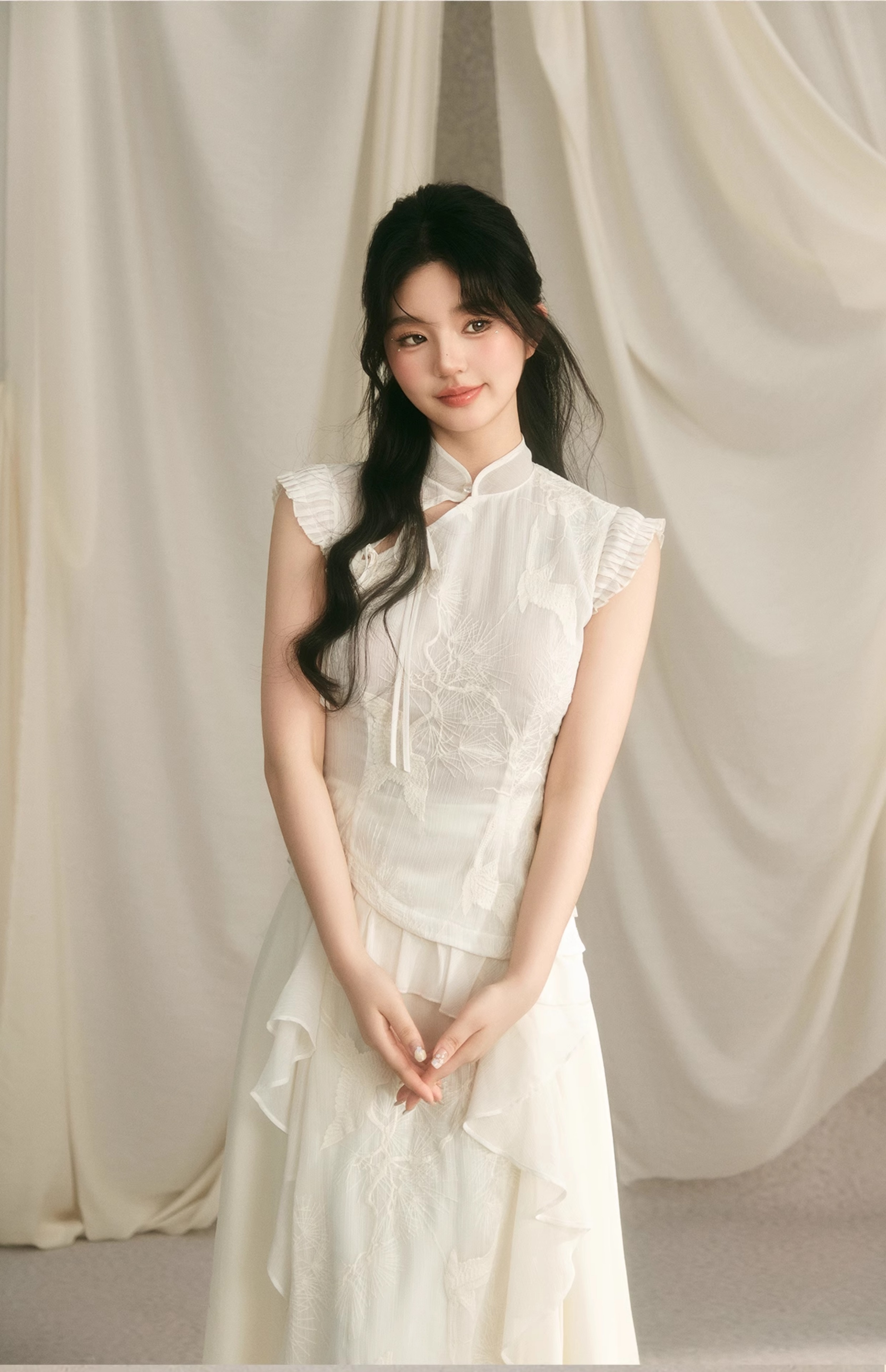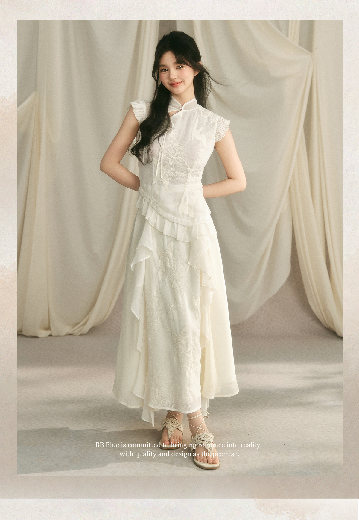 Embroidery Ruffle Qipao Top & Ruffle Hem Skirt Setup NA7443