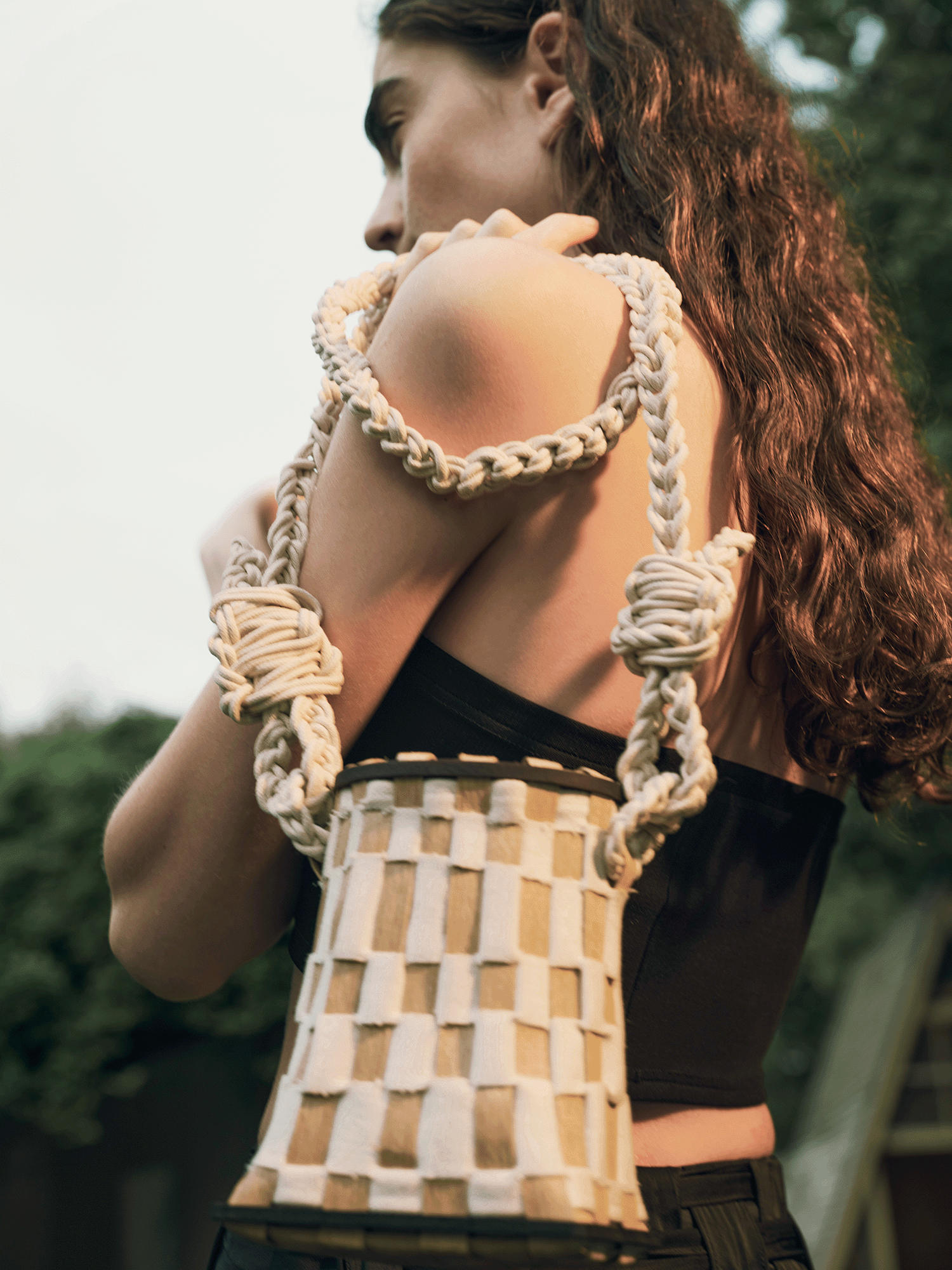 Paper Rattan Vase-Shaped Shoulder Bag NA7935